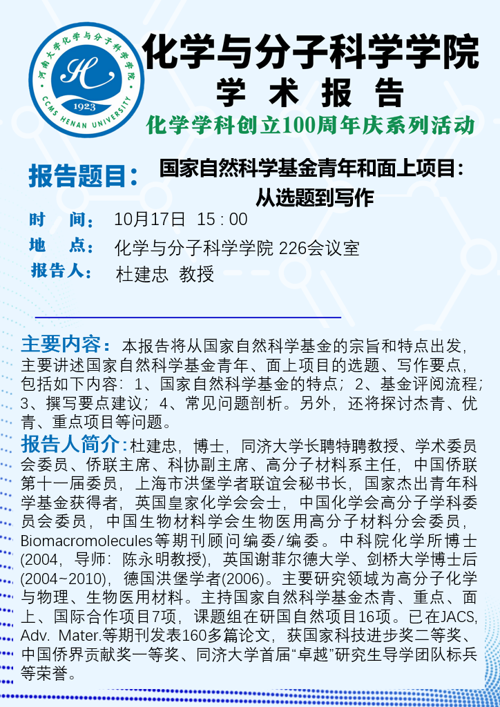 杜建忠:国家自然科学基金青年和面上项目: 从选题到写作(时间:10月17日)