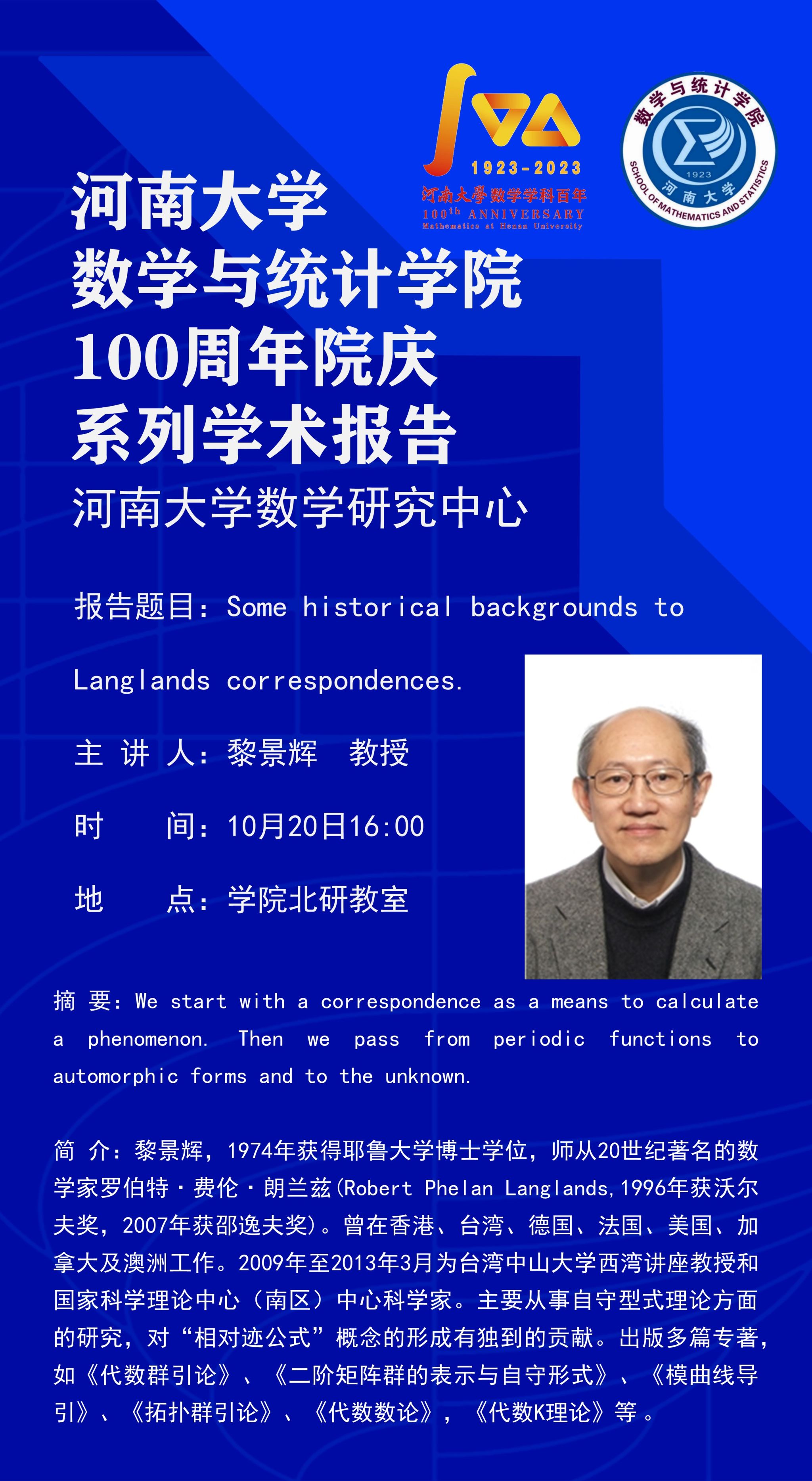 黎景辉:Some historical backgrounds to Langlands correspondences (时间:10.20)