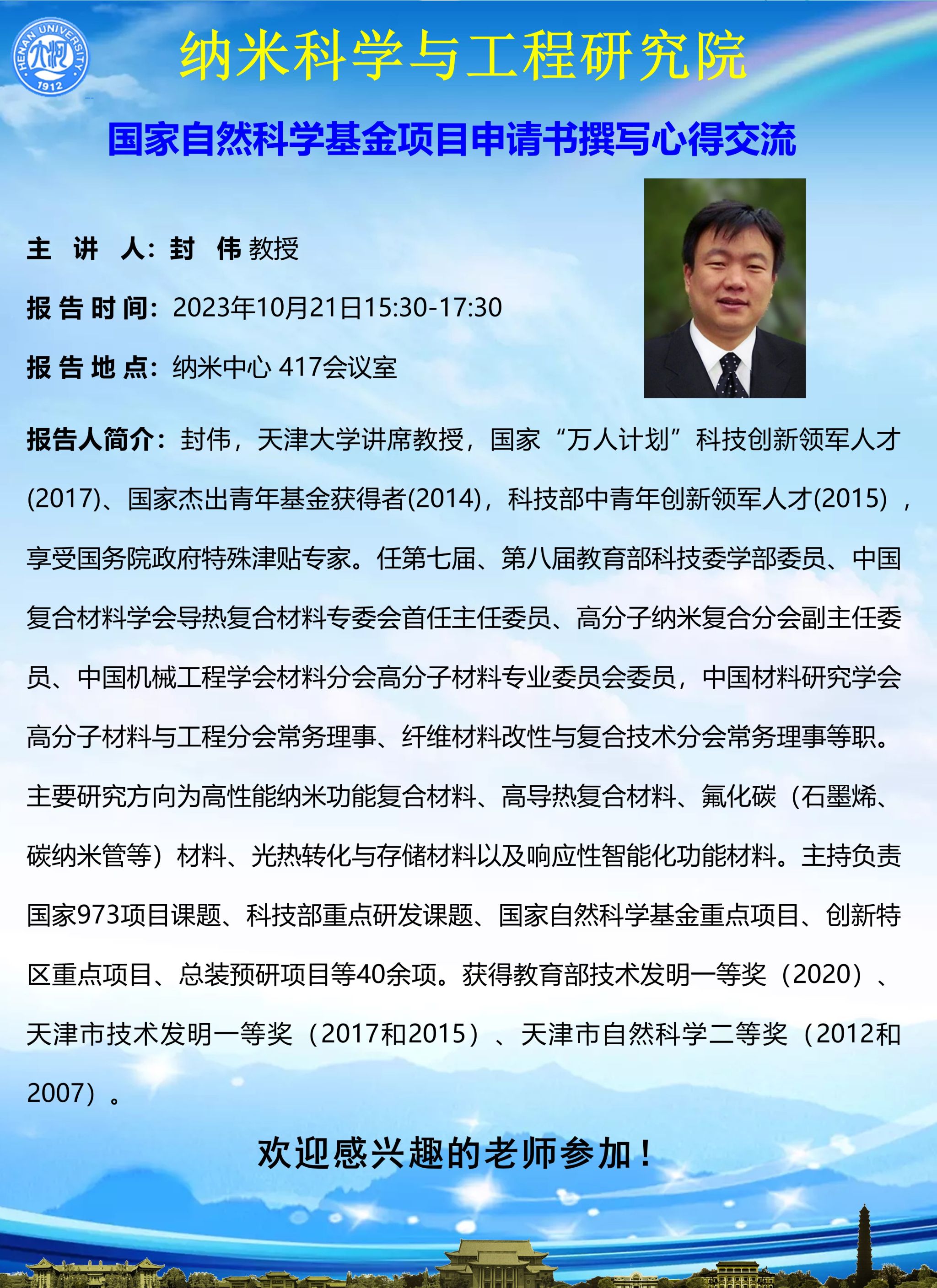 封伟:国家自然科学基金项目申请书撰写心得交流(时间:10月21日)