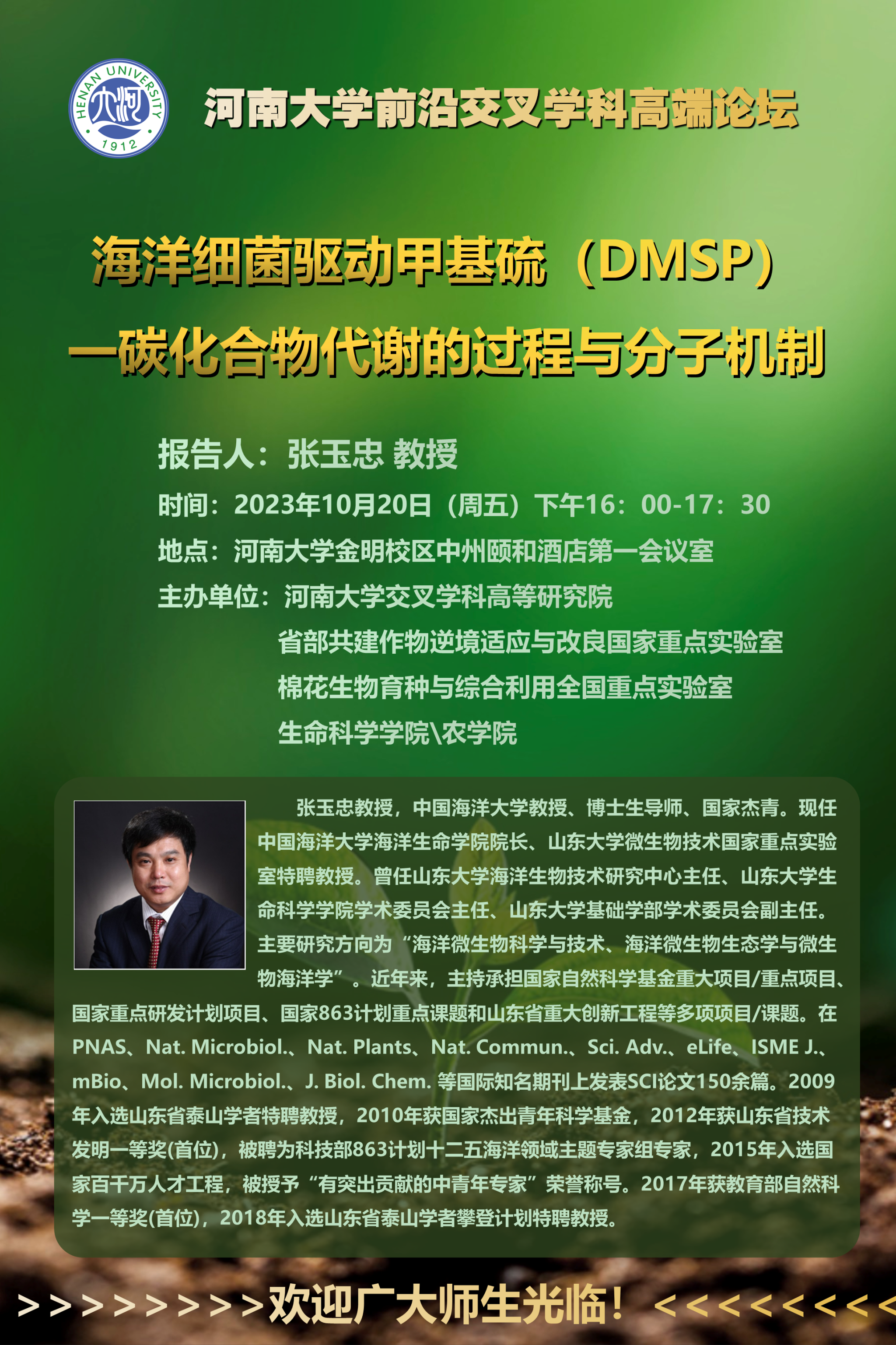张玉忠:海洋细菌驱动甲基硫(DMSP) 一碳化合物代谢的过程与分子机制 (时间:10月20日)