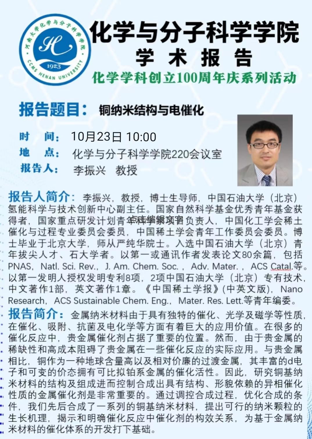 李振兴:铜纳米结构与电催化(时间:10月23日)