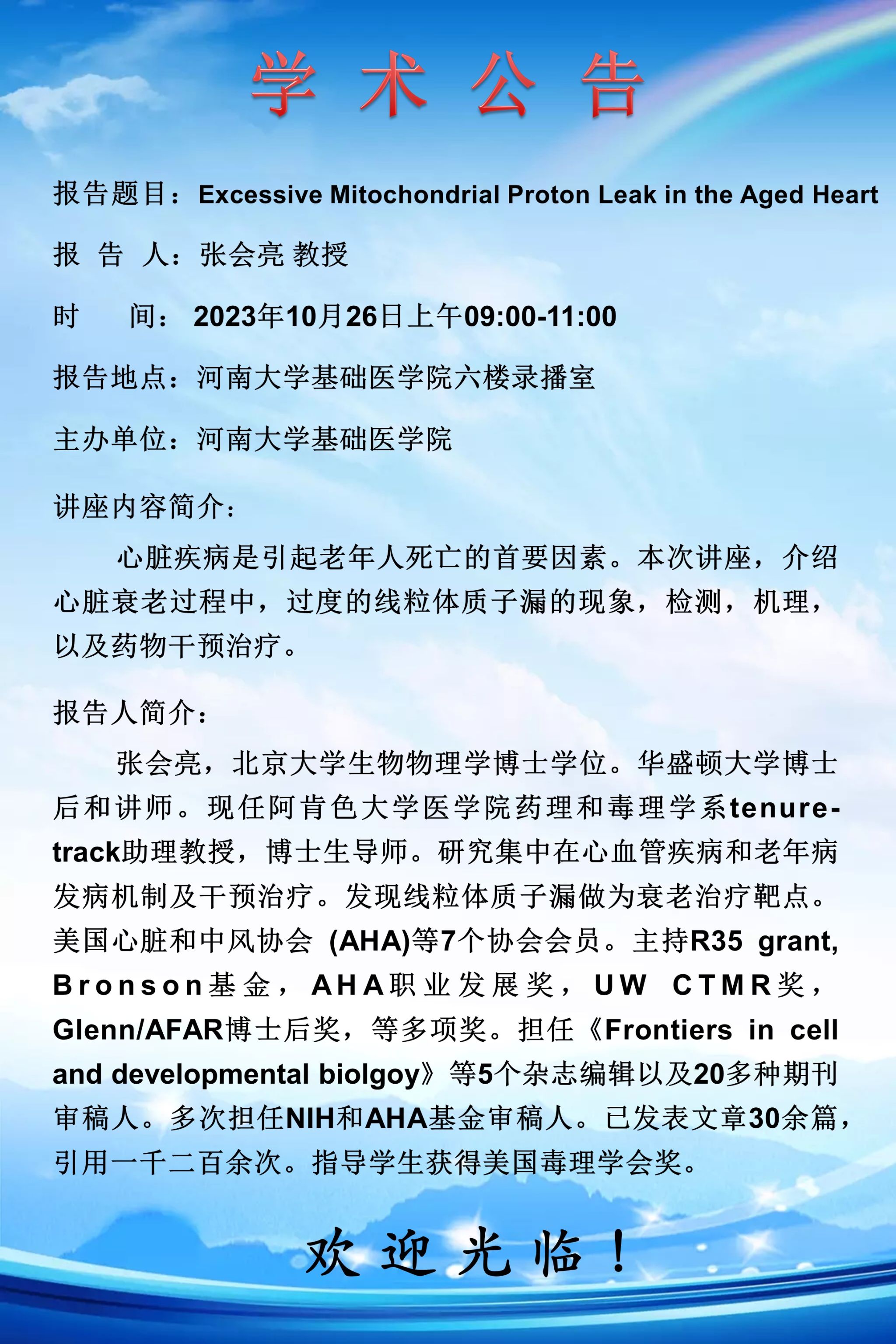 张会亮:Excessive Mitochondrial Proton Leak in the Aged Heart (时间:10月26日)