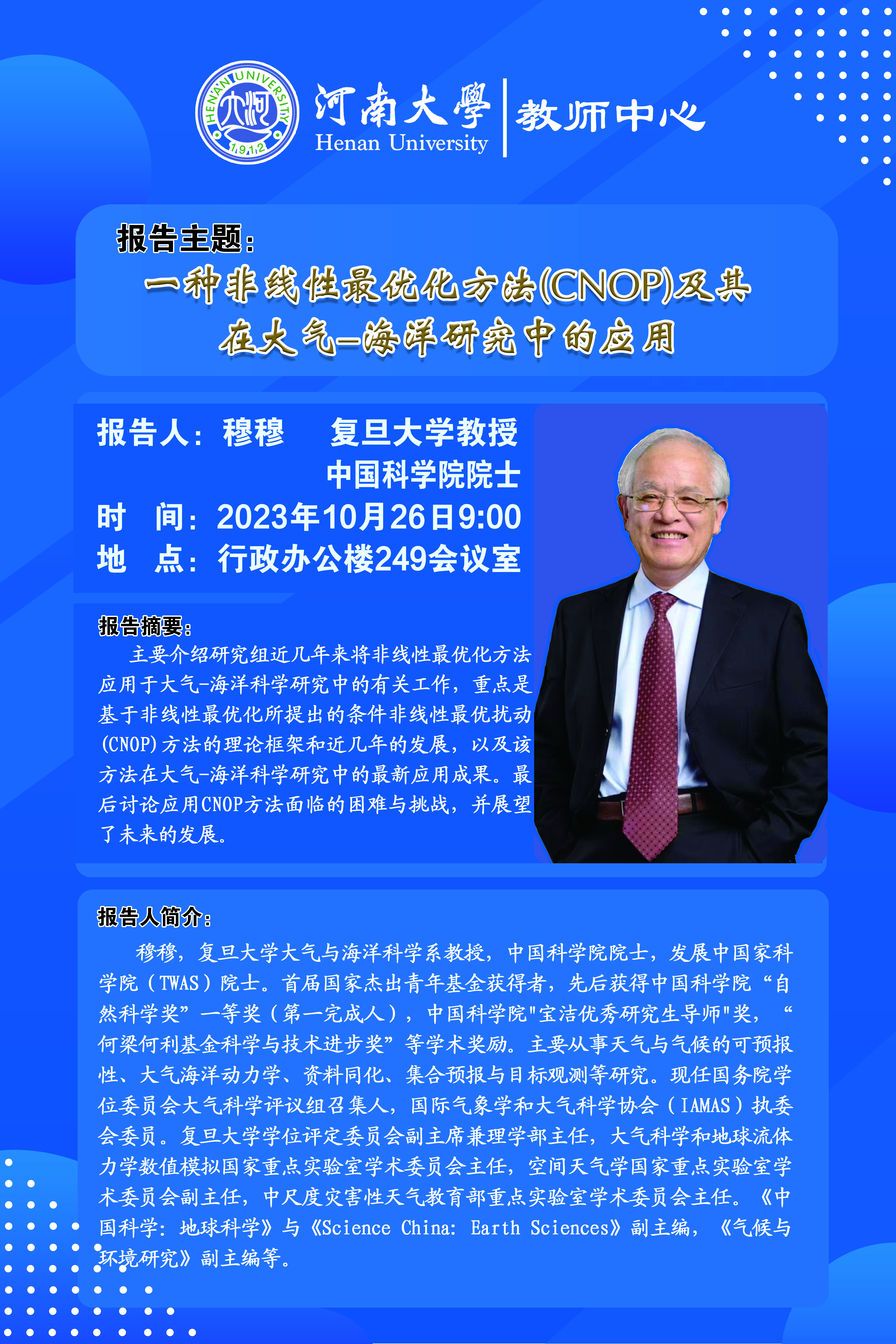 穆穆:一种非线性最优化方法(CNOP)及其在大气-海洋研究中的应用(时间:10月26日)