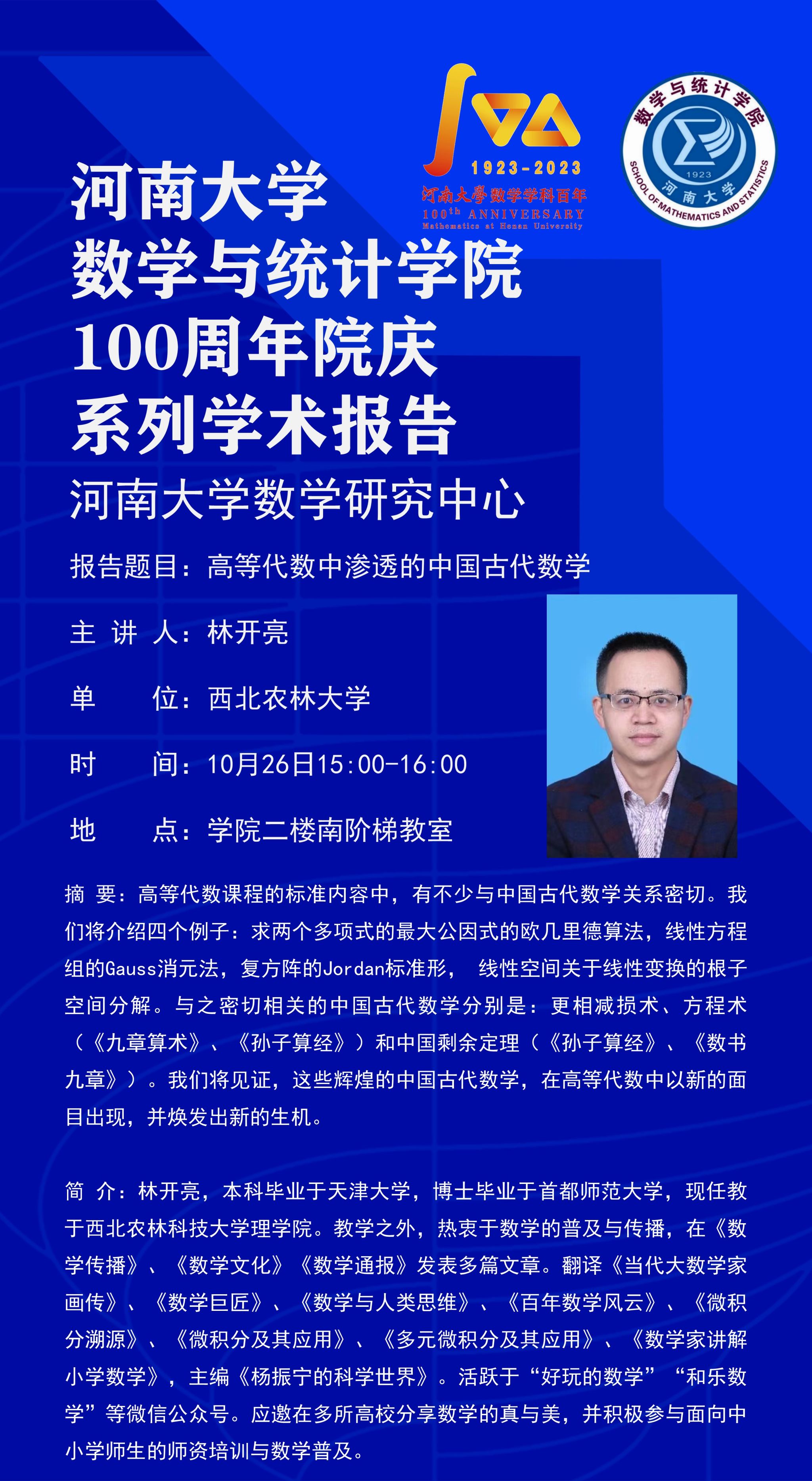 林开亮:高等代数中渗透的中国古代数学(时间:10.26)