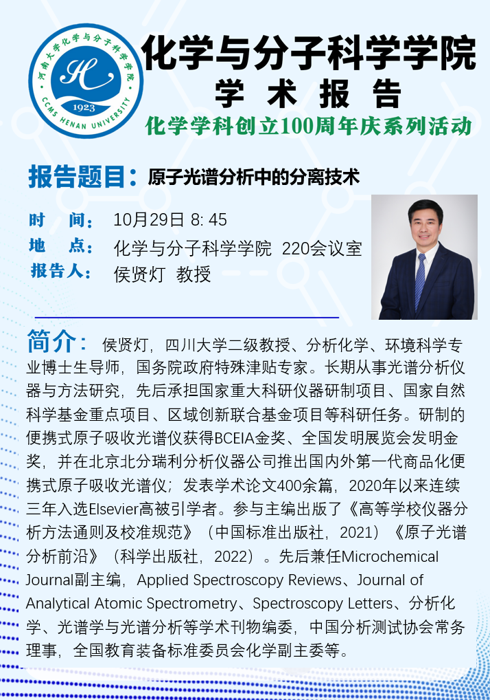 侯贤灯:原子光谱分析中的分离技术(时间:10月29日)
