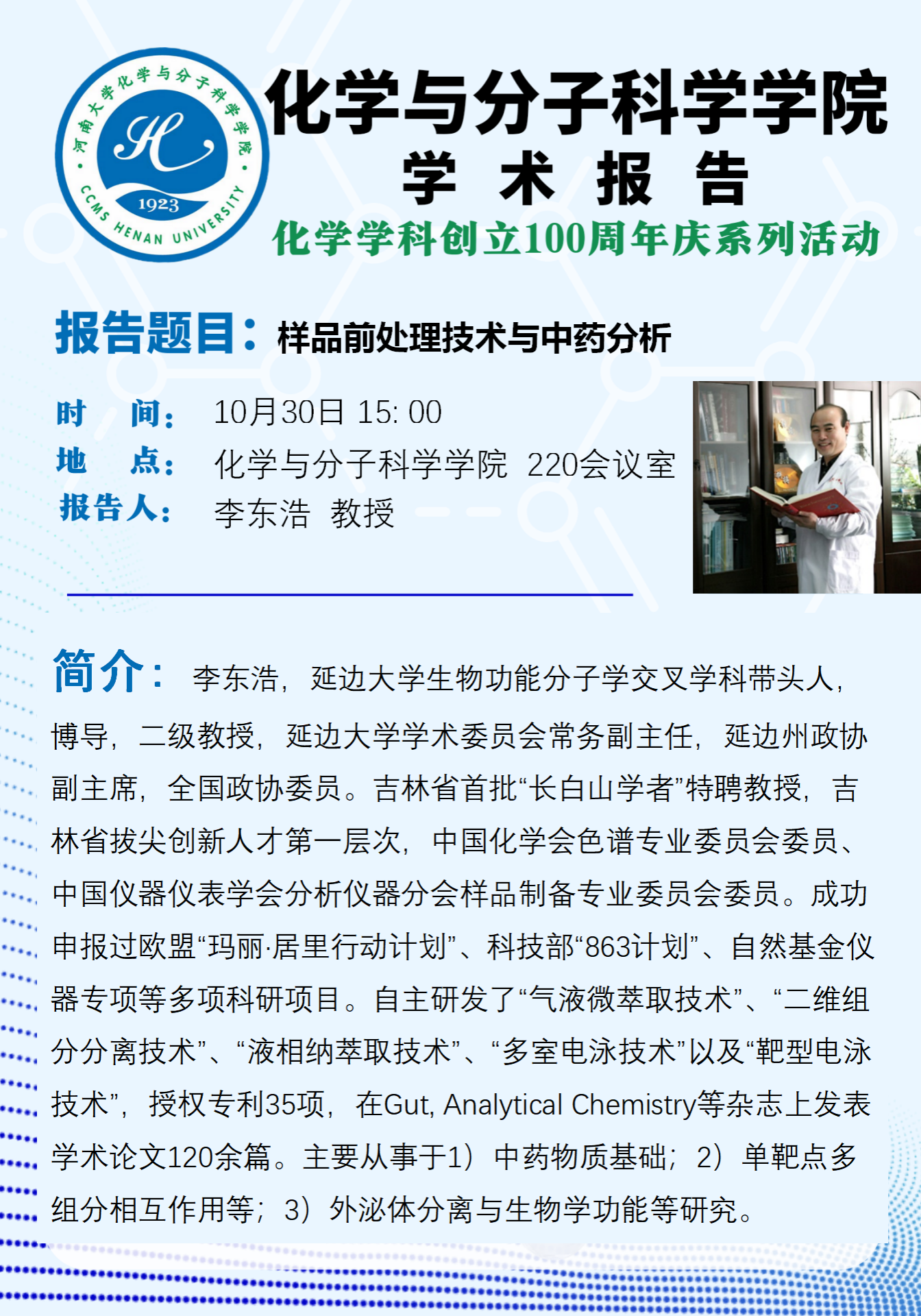 李东浩:样品前处理技术与中药分析(10月30日)
