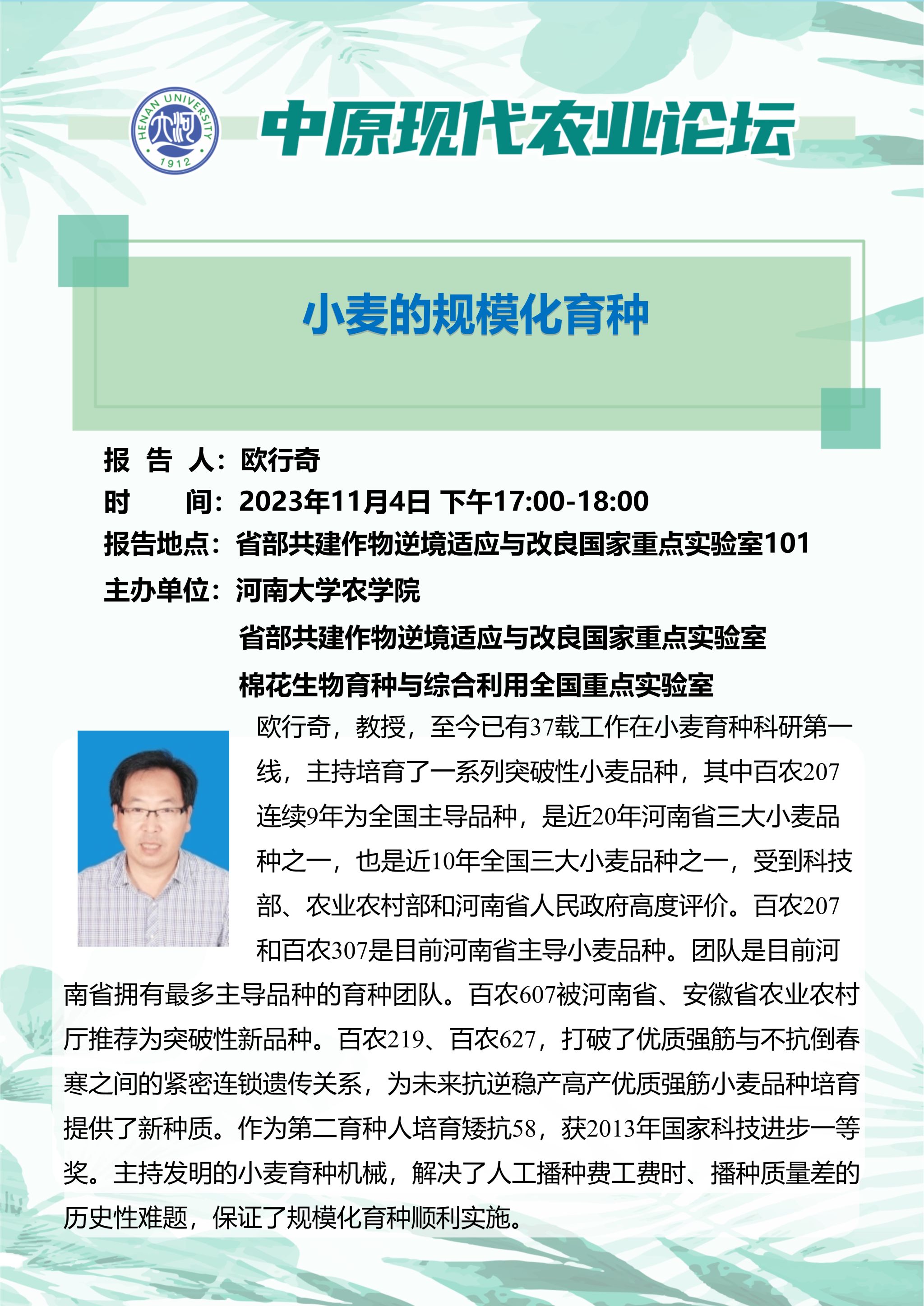 欧行奇:小麦的规模化育种(时间:11月4日)