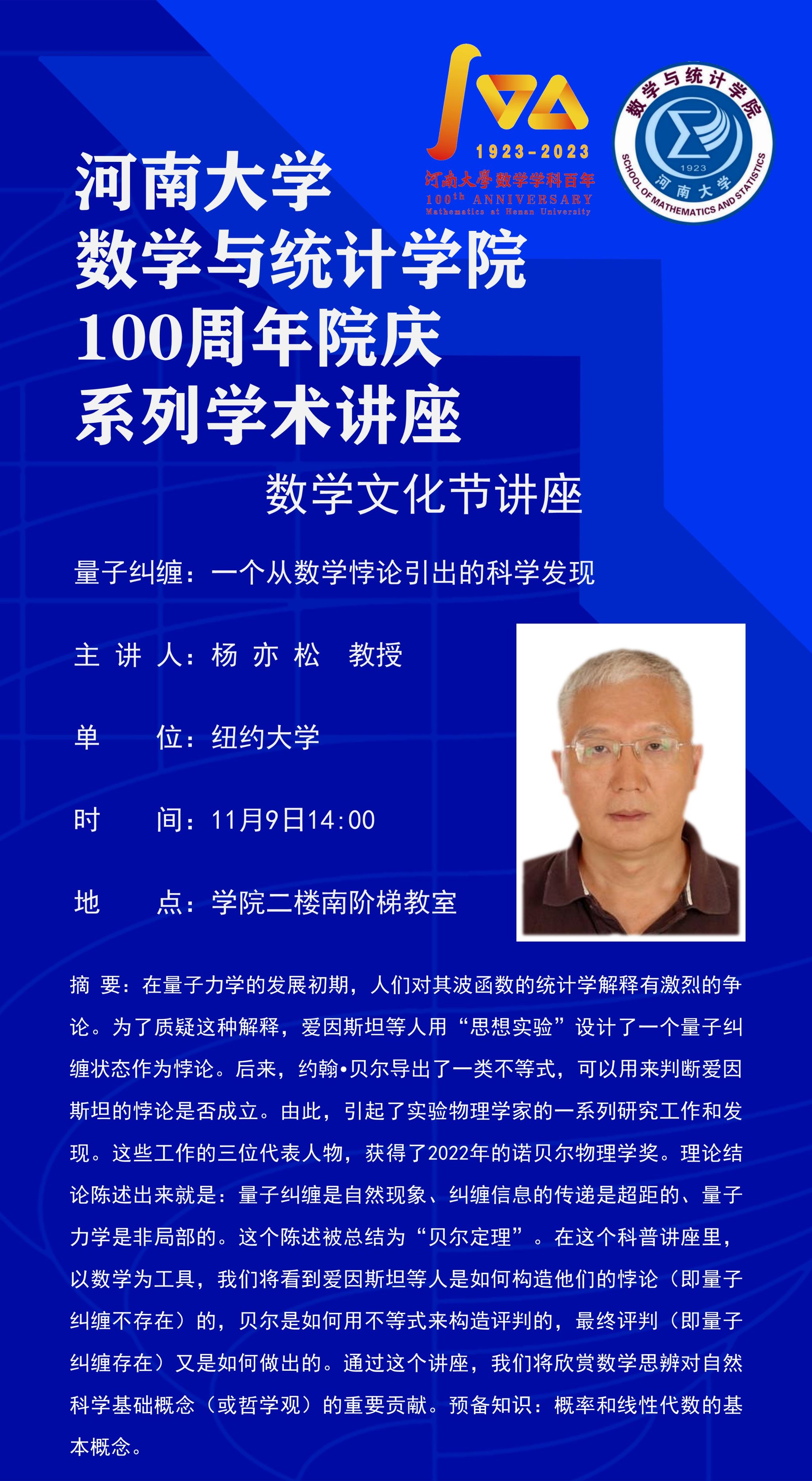 杨亦松:量子纠缠:一个从数学悖论引出的科学发现(时间11.9)
