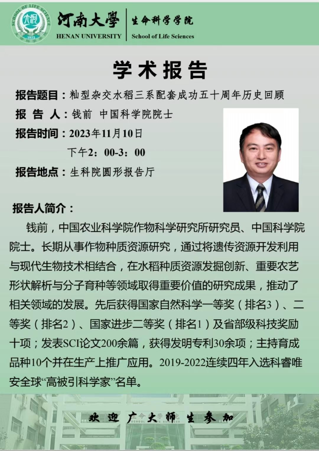 钱前:籼型杂交水稻三系配套成功五十周年历史回顾(时间:11月10日)
