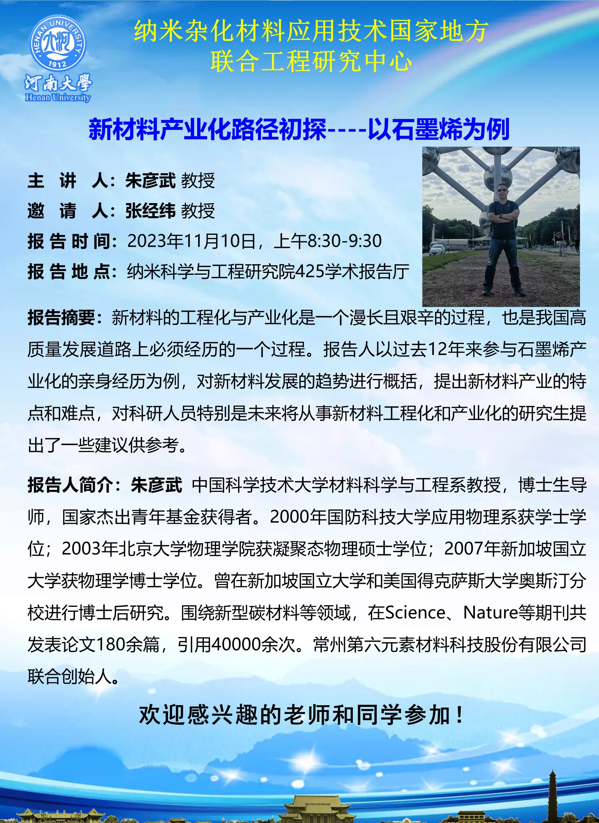 朱彦武:新材料产业化路径初探----以石墨烯为例(时间:11月10日)