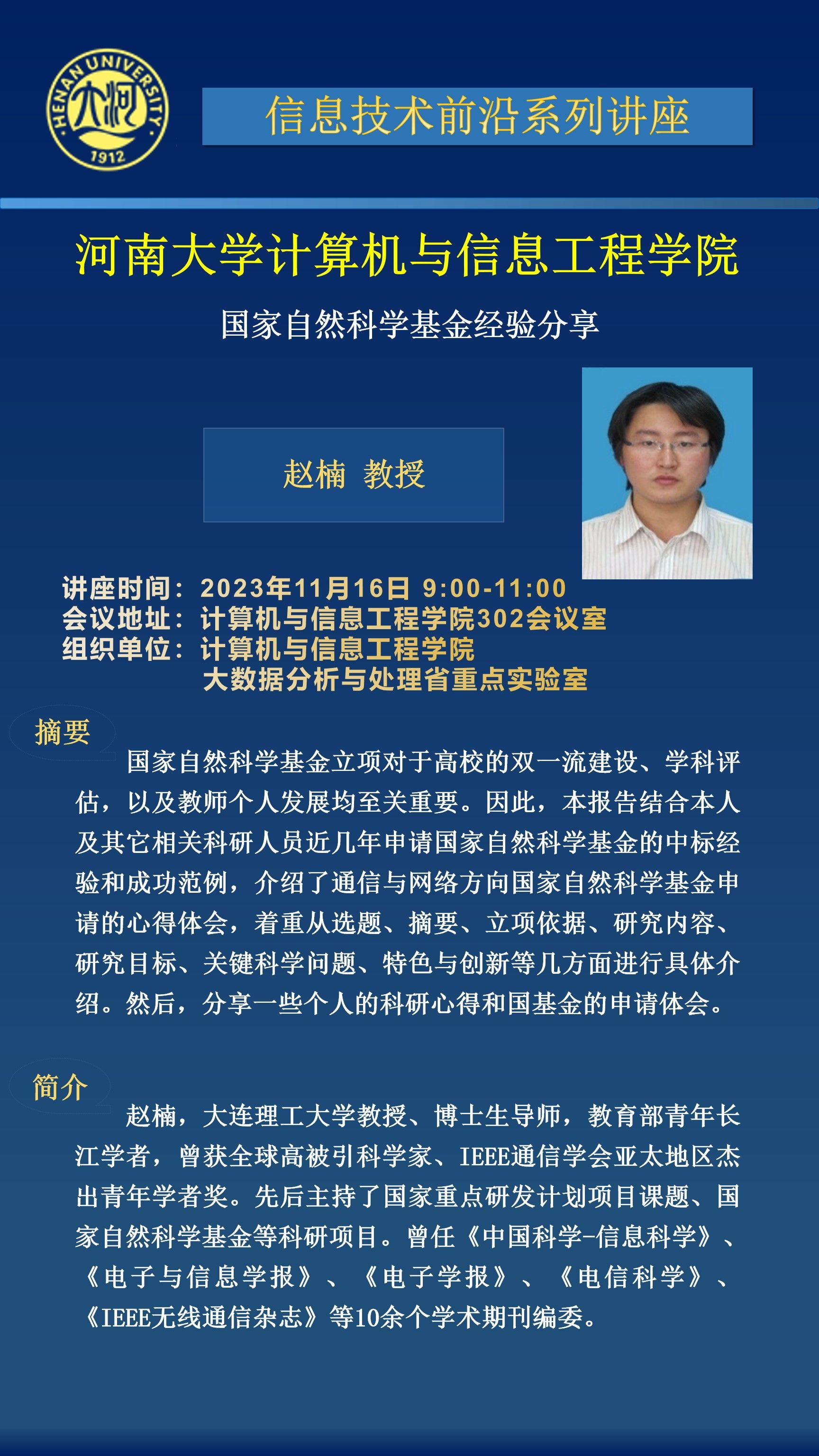 赵楠:国家自然科学基金经验分享(时间:2023年11月16日)