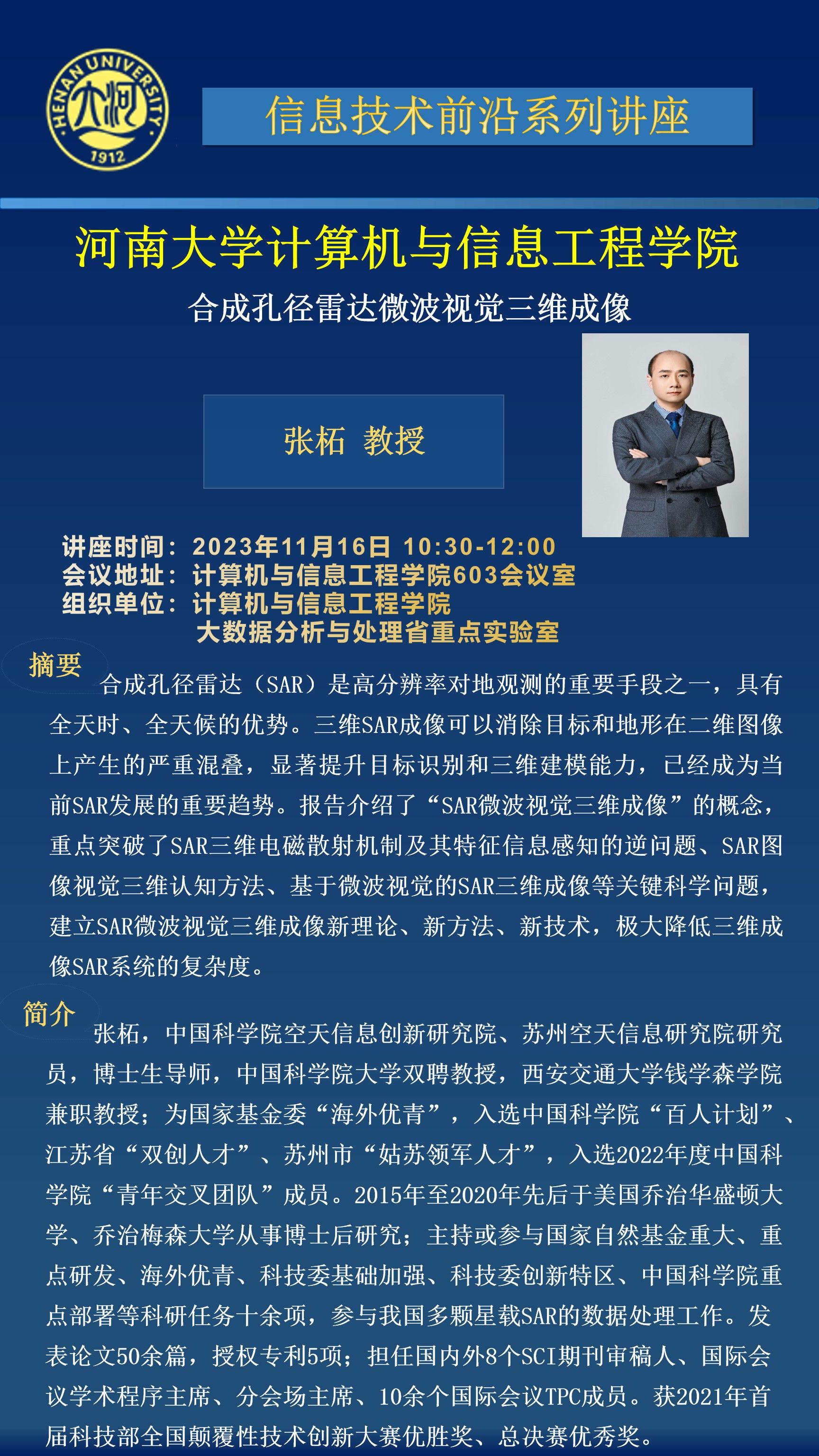 张柘:合成孔径雷达微波视觉三维成像(时间:2023年11月16日)