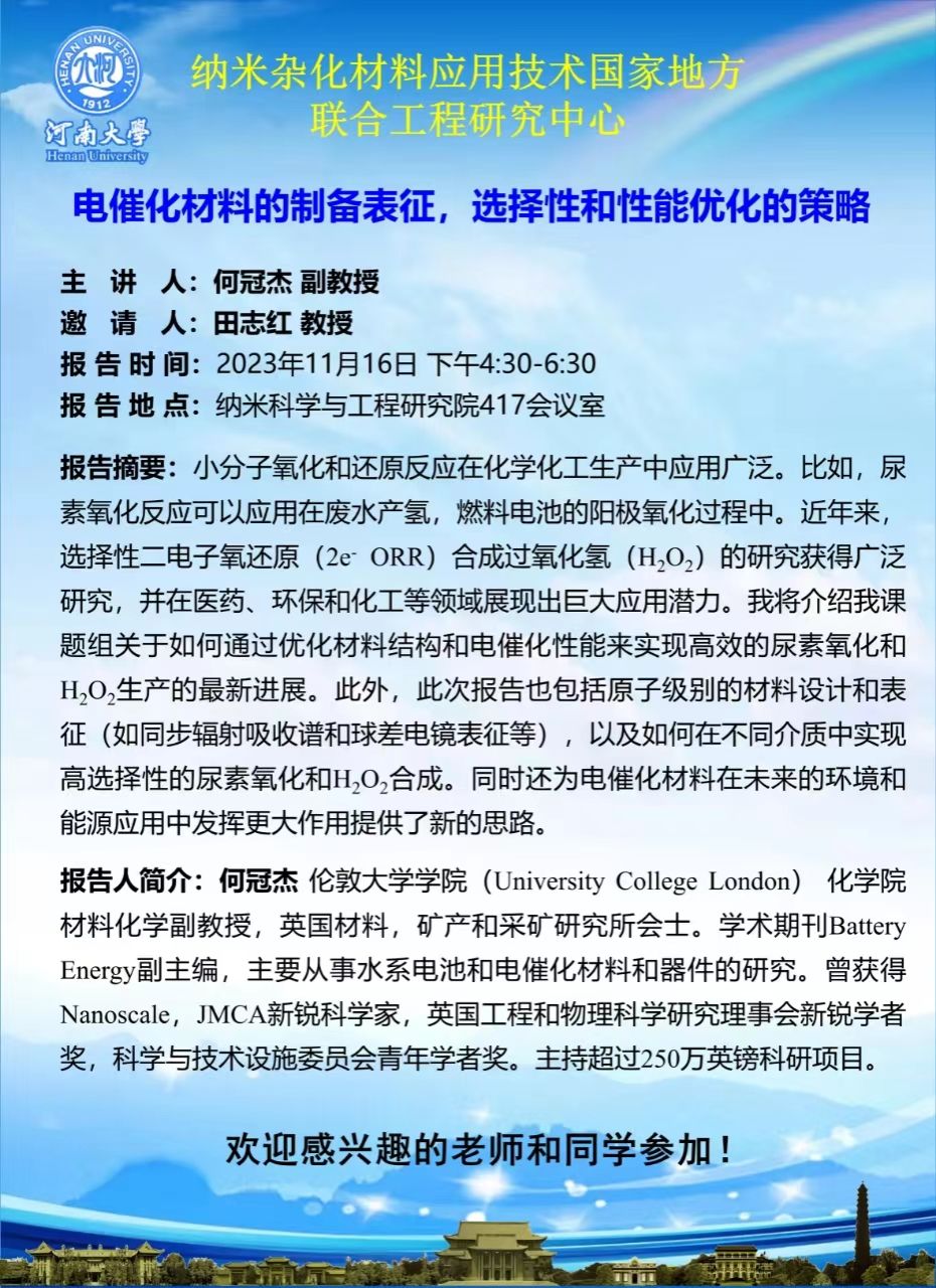 何冠杰:电催化材料的制备表征,选择性和性能优化的策略(时间:11月16日)