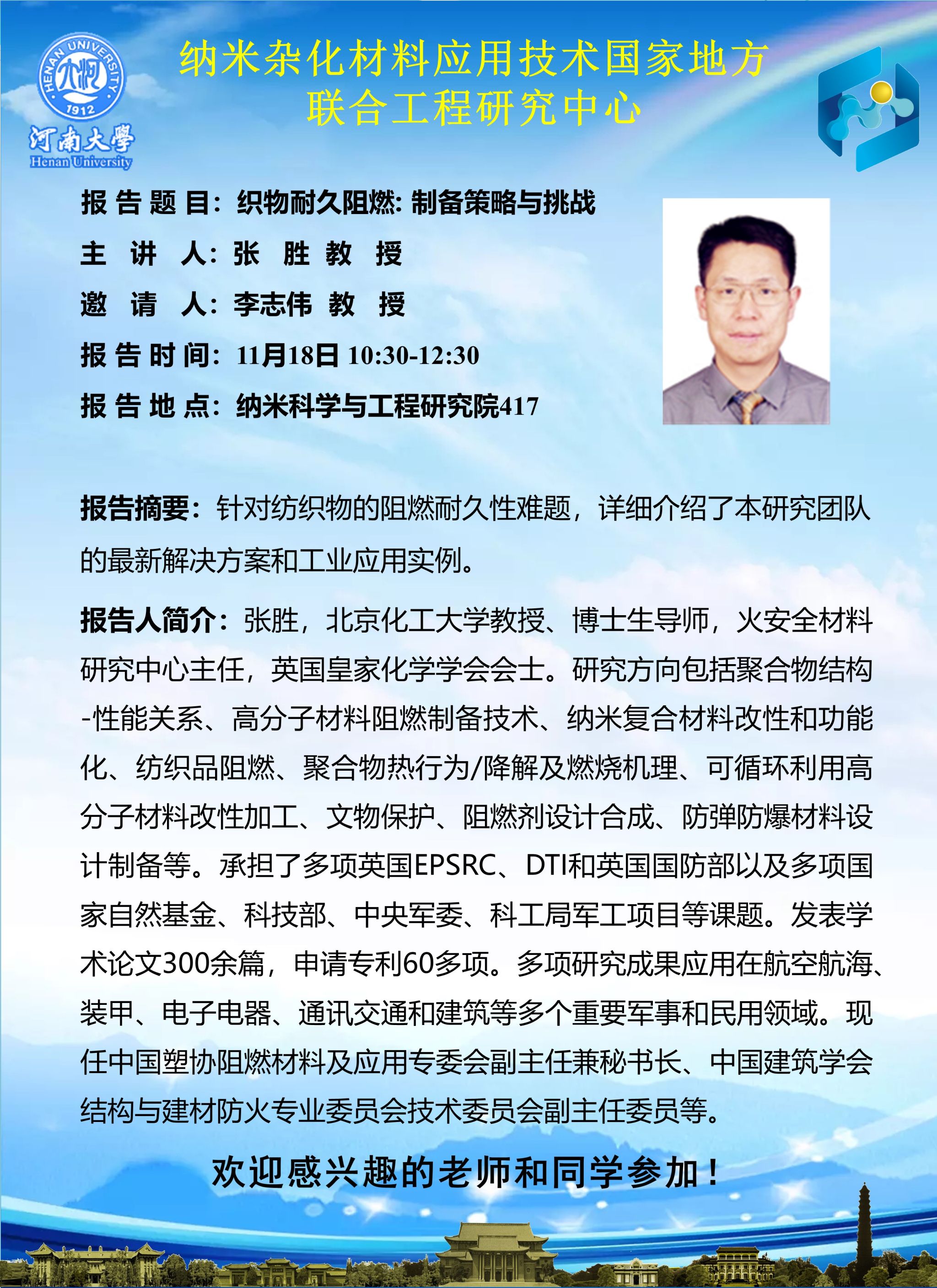 张胜:织物耐久阻燃: 制备策略与挑战(时间:11月18日)