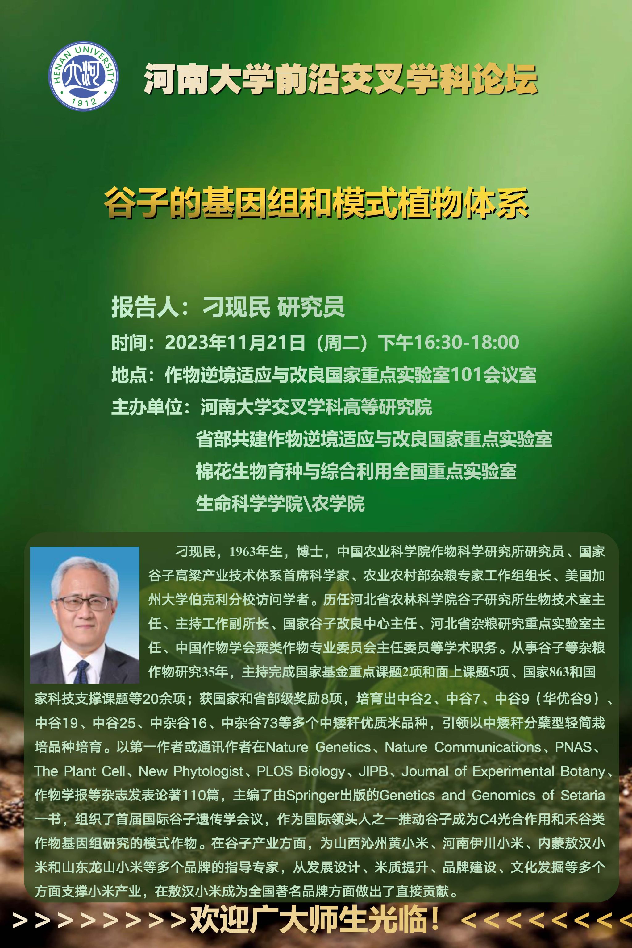 刁现民:谷子的基因组和模式植物体系(时间:11月21日)