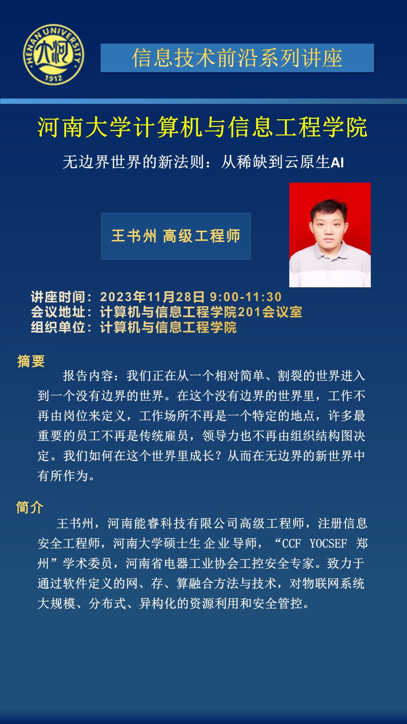 王书州:无边界世界的新法则:从稀缺到云原生AI(时间:11月28日)