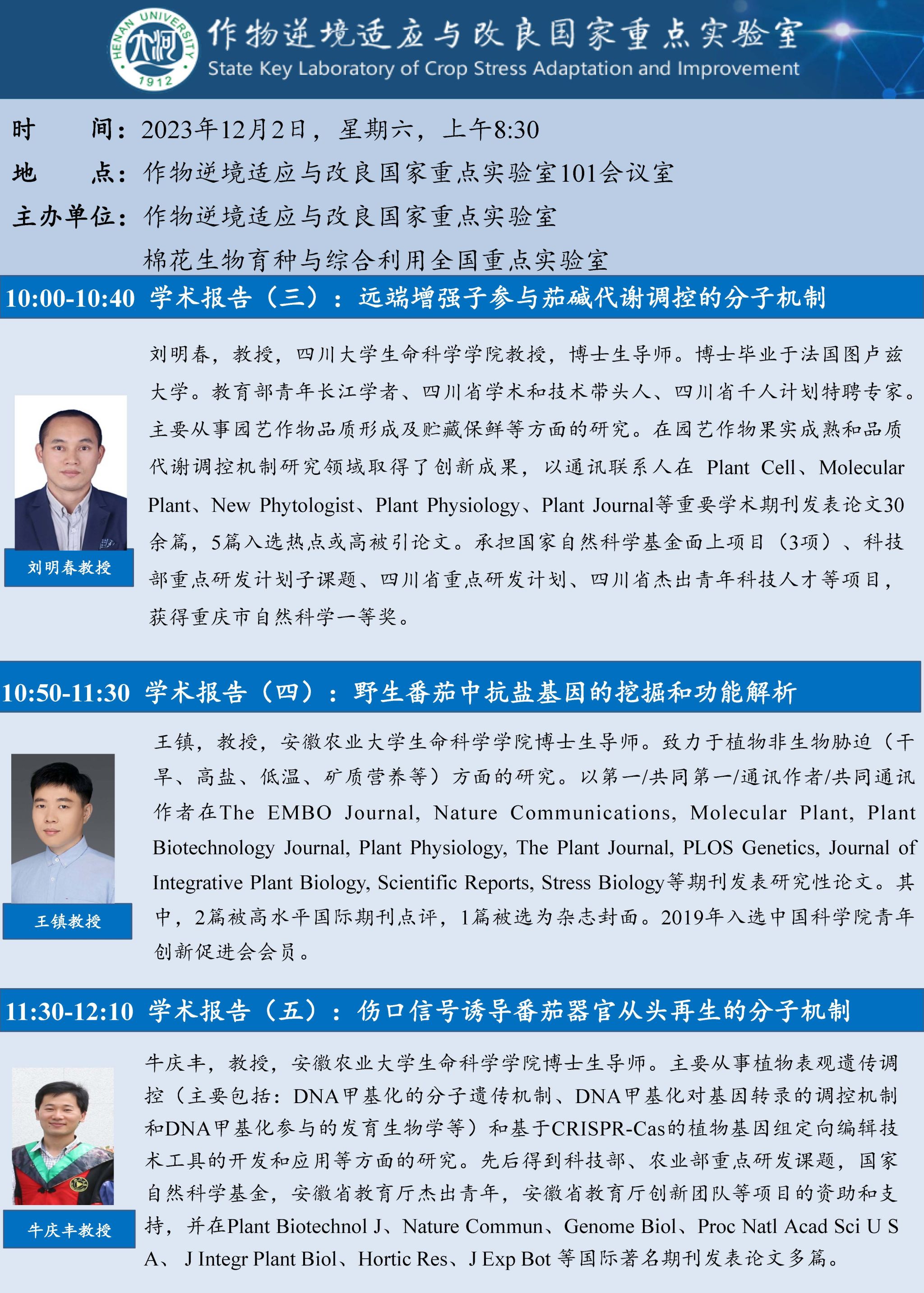 刘明春:远端增强子参与茄碱代谢调控的分子机制(时间:12月2日)