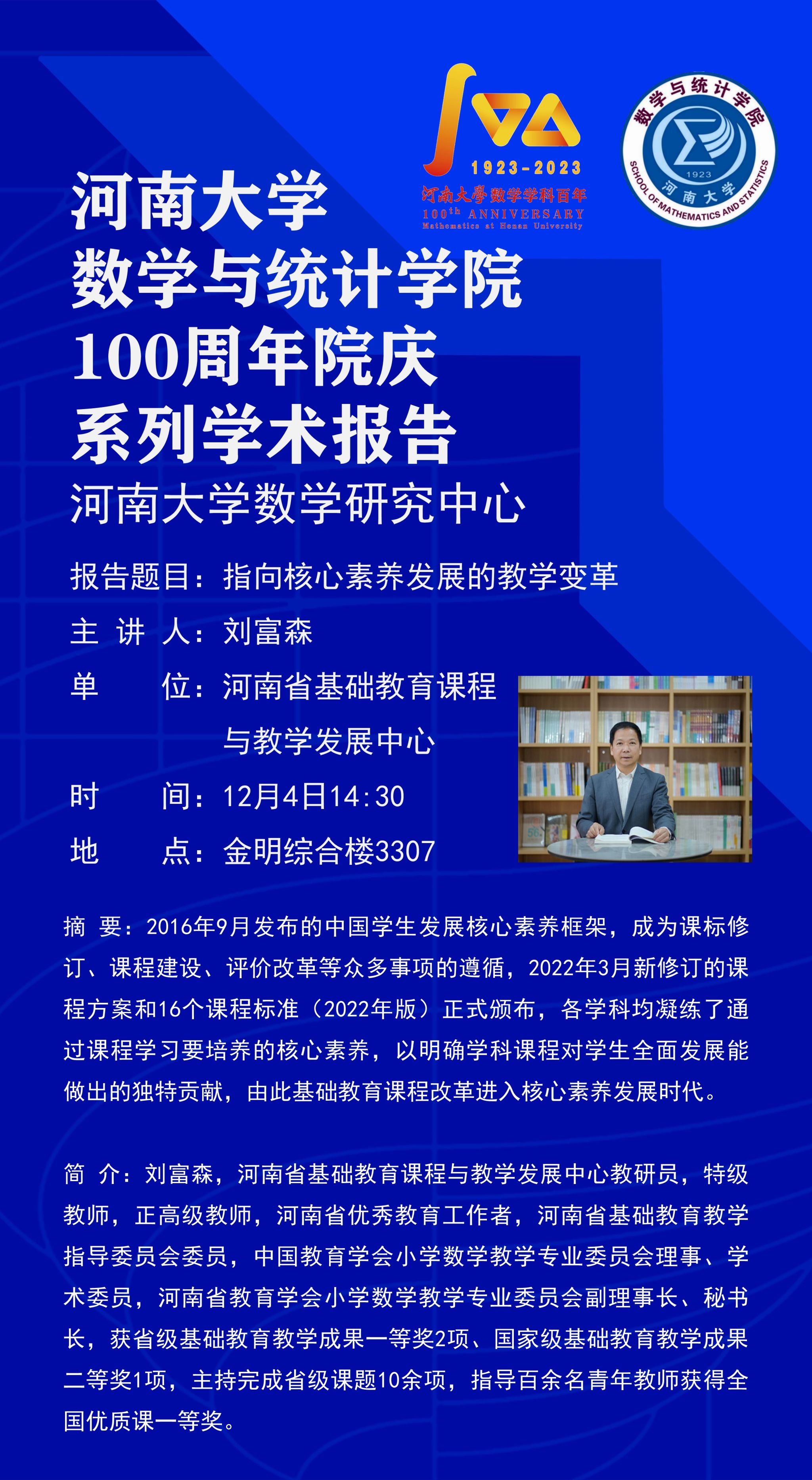 刘富森:指向核心素养发展的教学变革(时间:12.4)