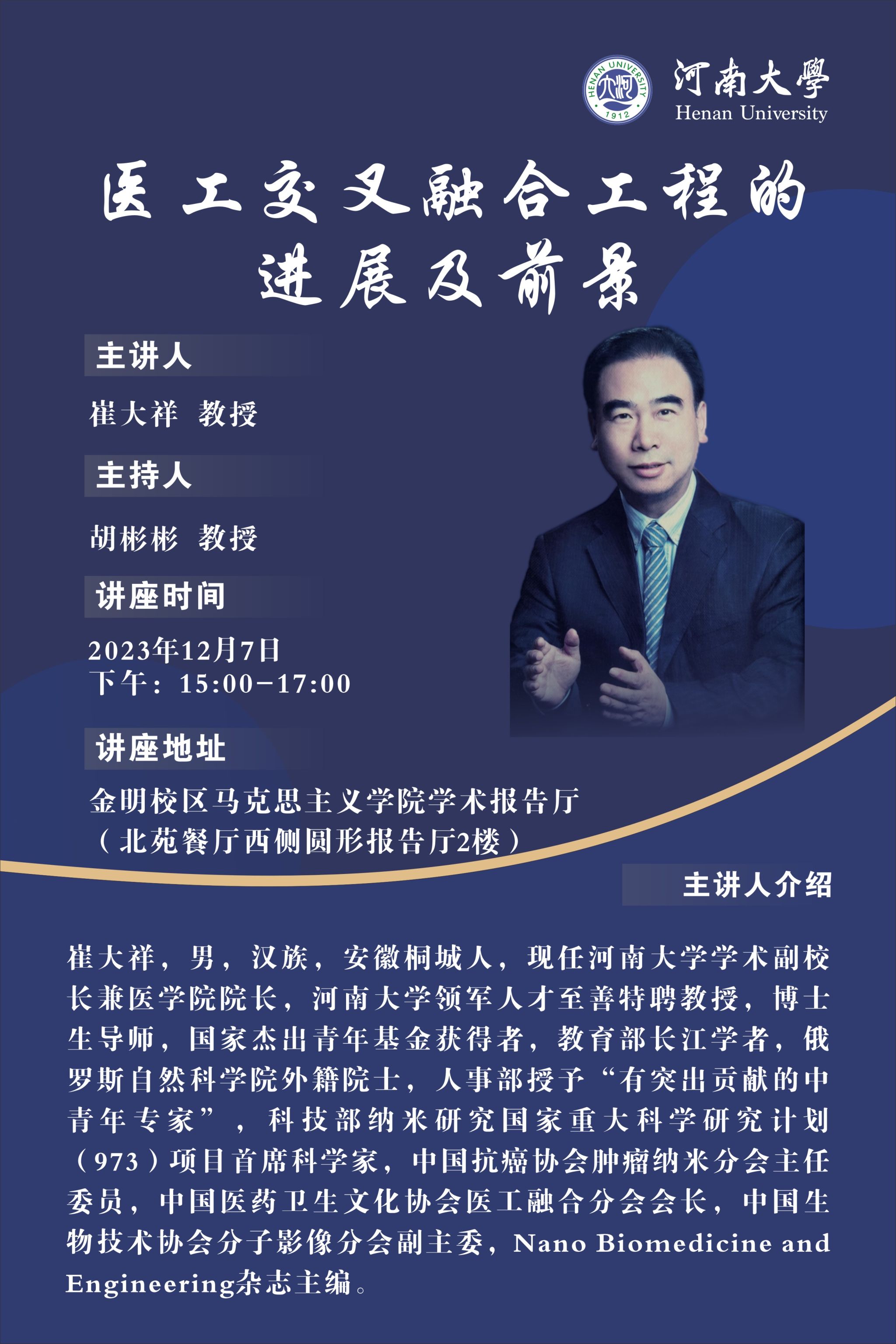 学风建设月名家讲坛第一讲:崔大祥--医工交叉融合工程的进展及前景(时间:12月7日)