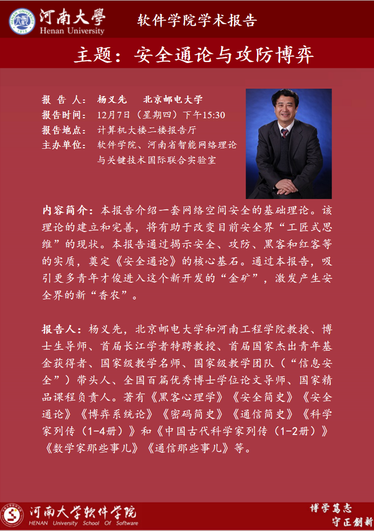 杨义先:安全通论与攻防博弈(时间:12月7日)