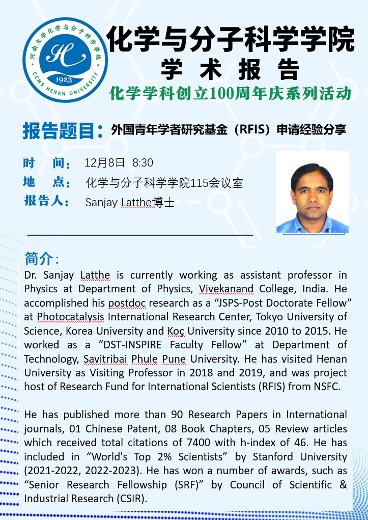Sanjay Latthe:外国青年学者研究基金(RFIS)申请经验分享(时间:12月8日)