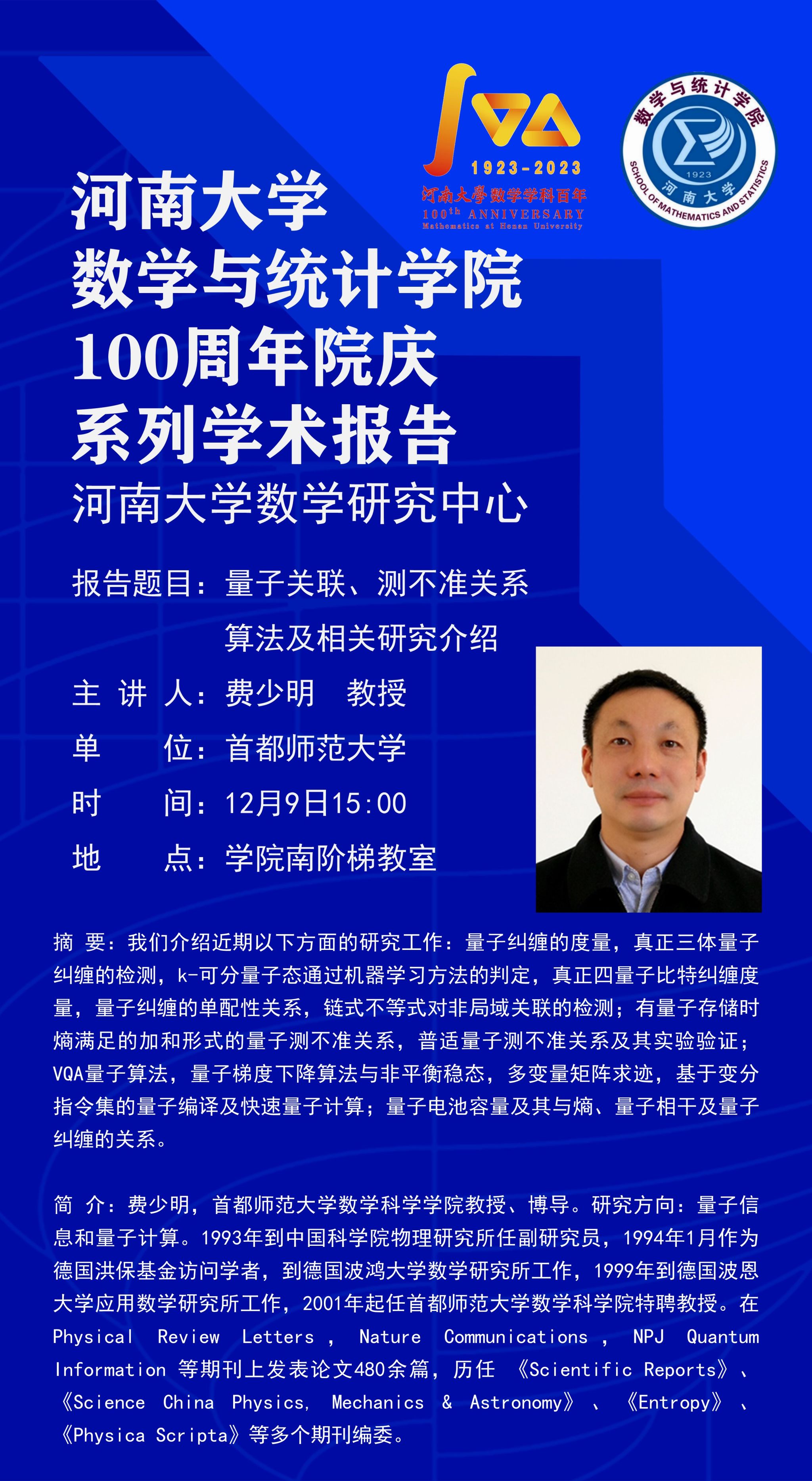 费少明:量子关联、测不准关系、算法及相关研究介绍(时间:12.9)