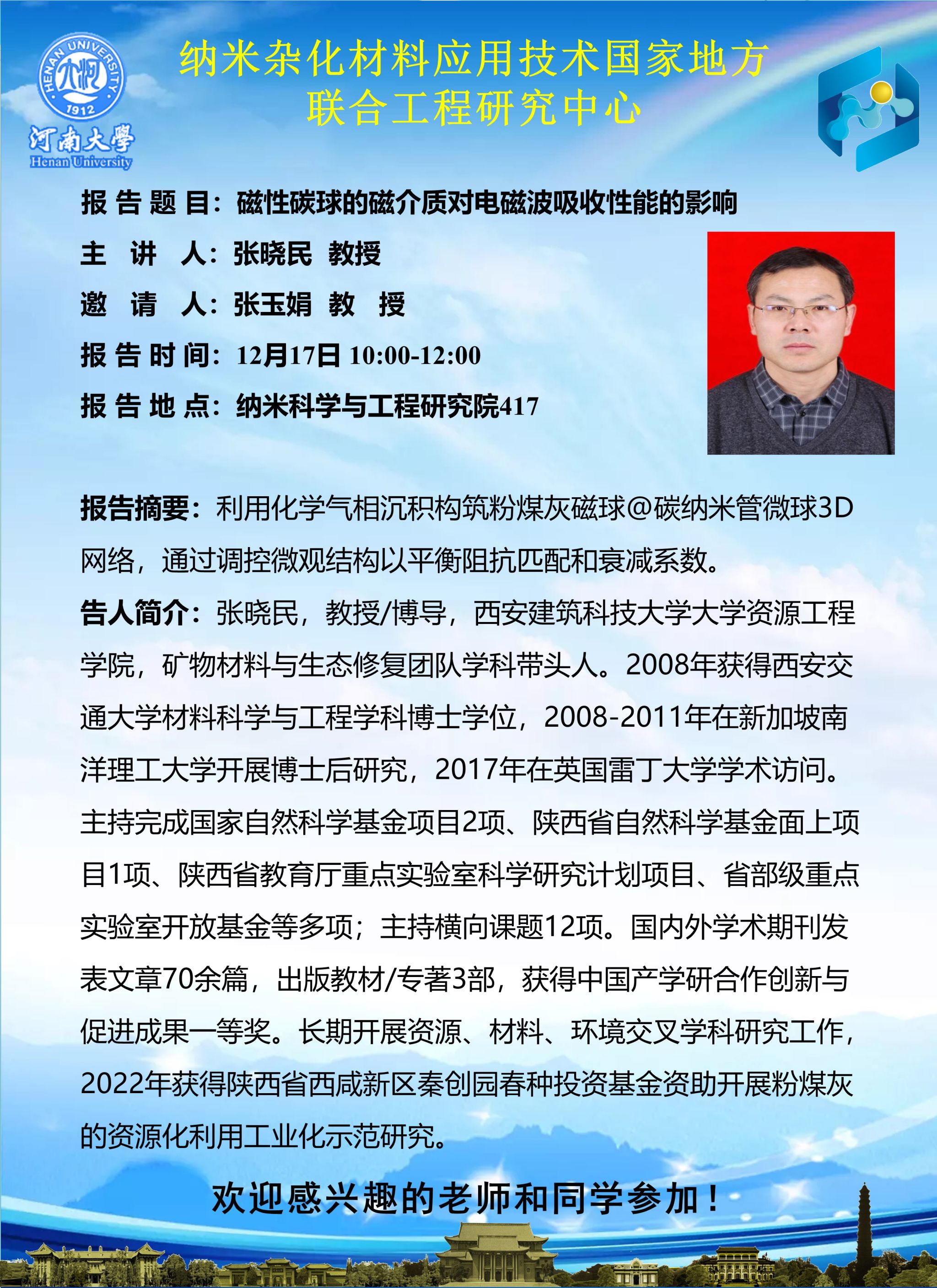 张晓民:磁性碳球的磁介质对电磁波吸收性能的影响(时间:12月17日)