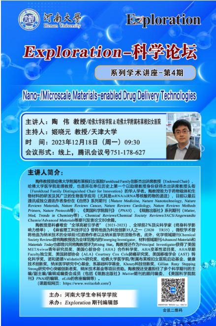 陶伟:Nano-/Microscale Materials-enabled Drug Delivery Technologies(时间:12月18日)