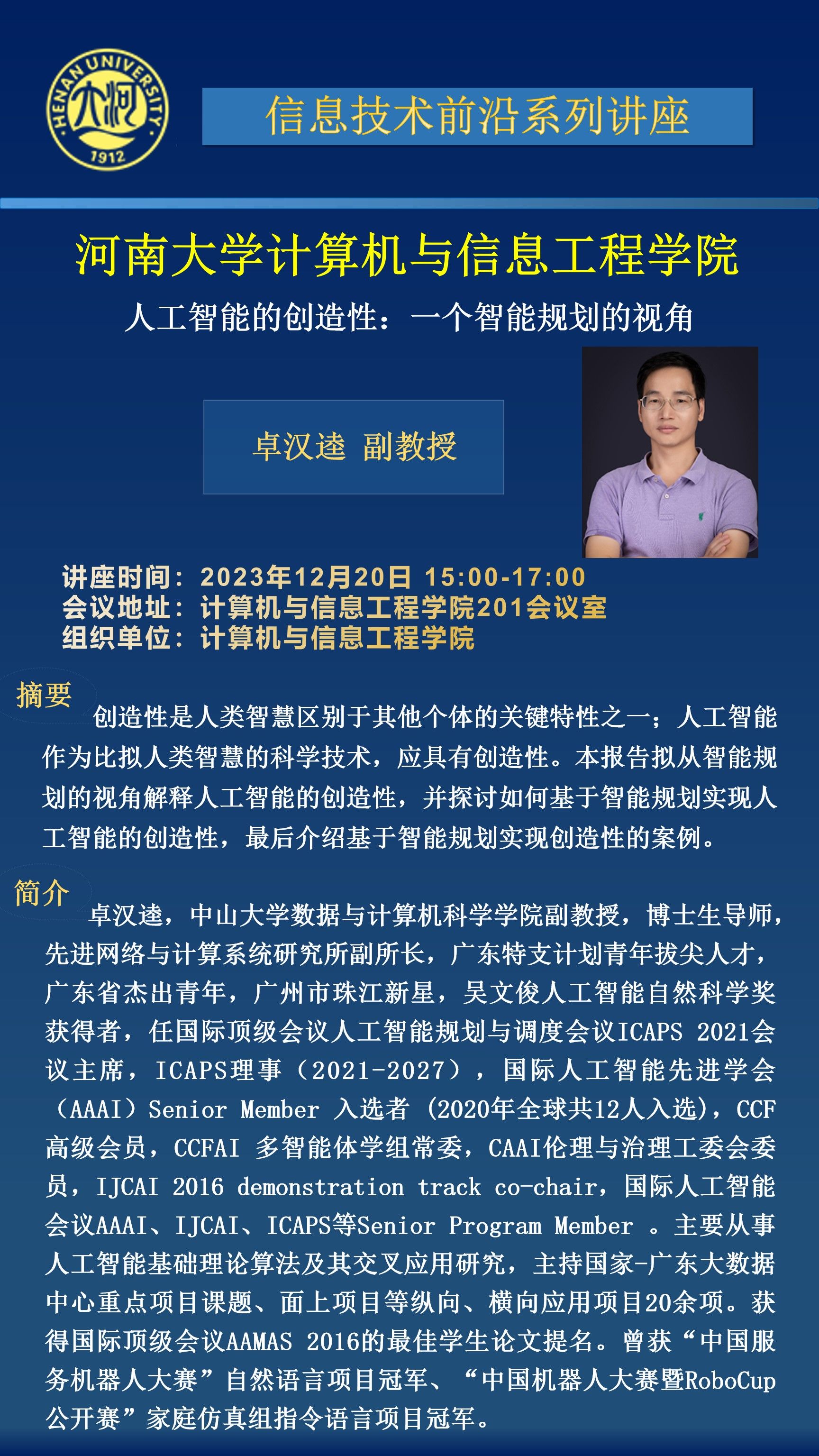 卓汉逵:人工智能的创造性_一个智能规划的视角(时间:12月20日)