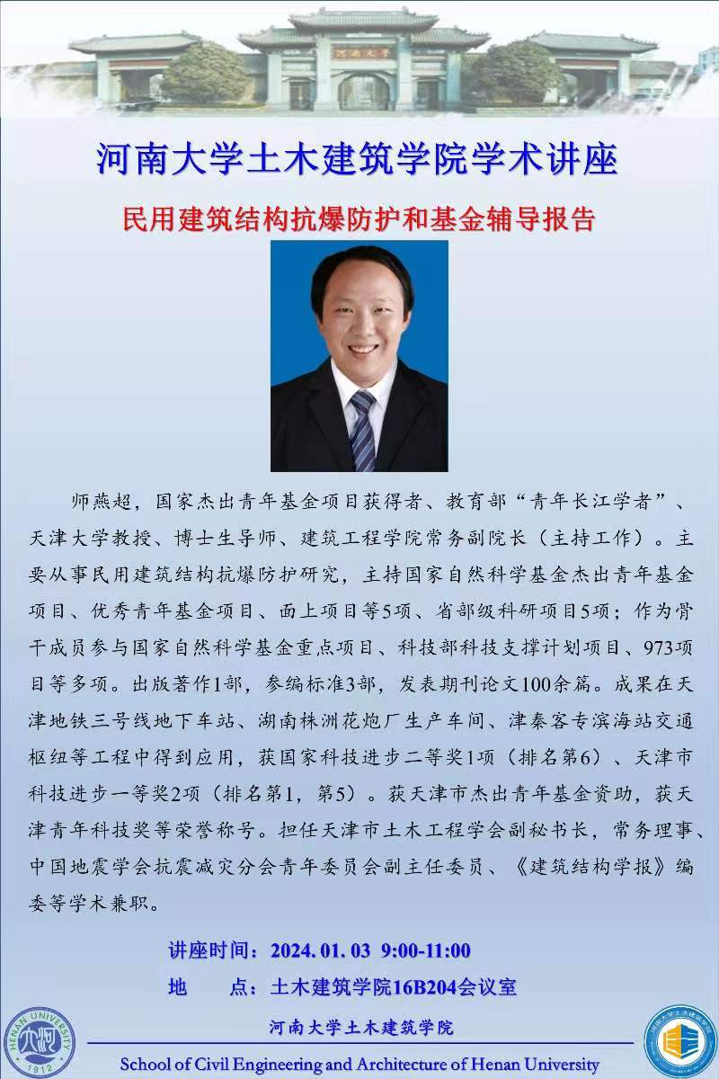 师燕超:民用建筑结构抗爆防护和基金辅导报告(时间:1月3日)