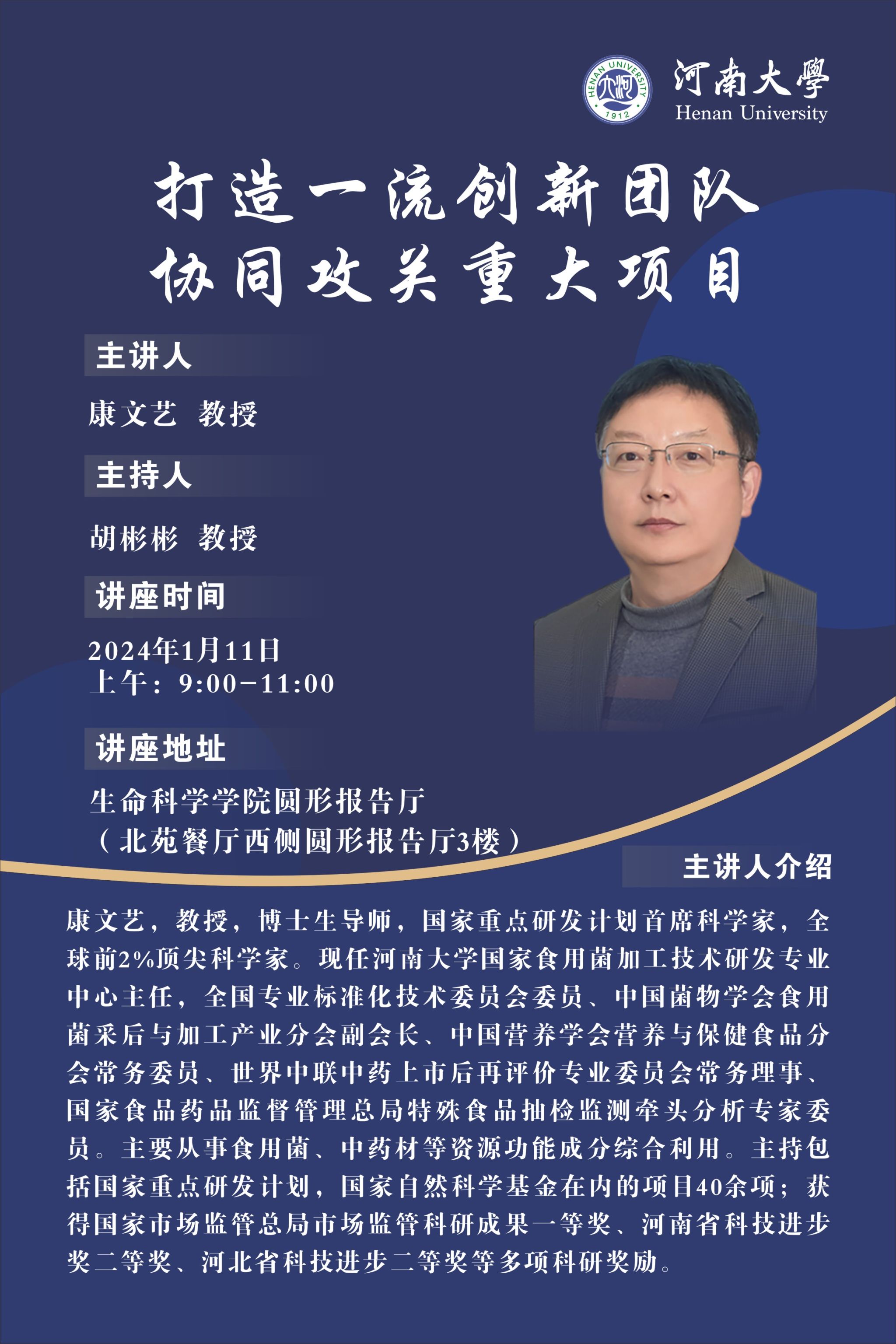 学风建设月名家讲坛第六讲-康文艺:打造一流创新团队,协同攻关重大项目(时间:1月11日)