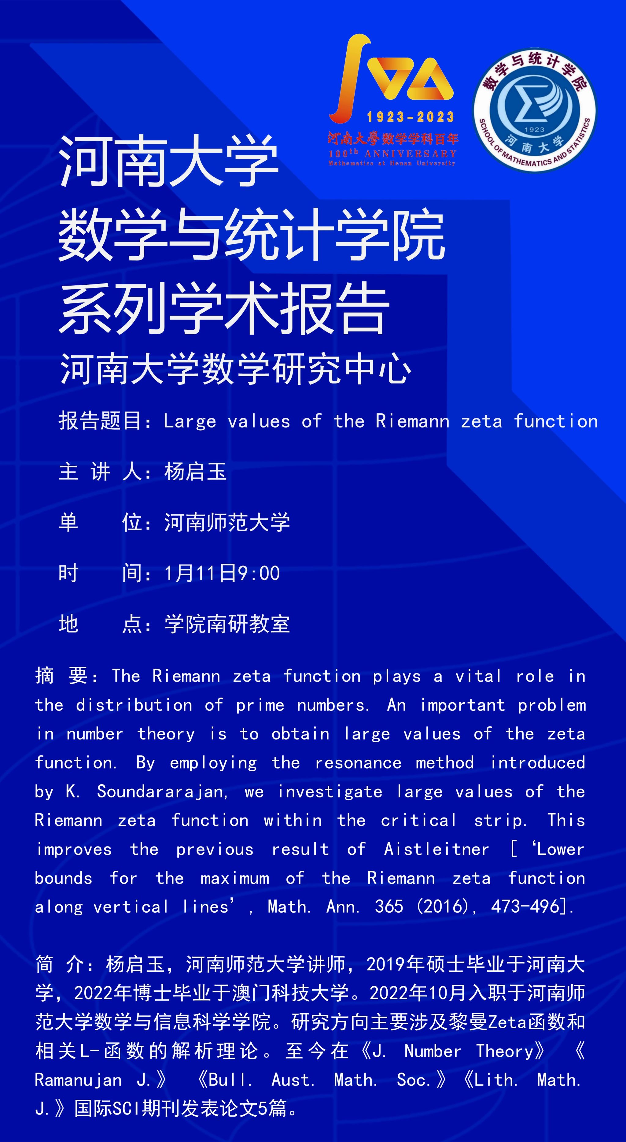 杨启玉:Large values of the Riemann zeta function(时间:1.11)