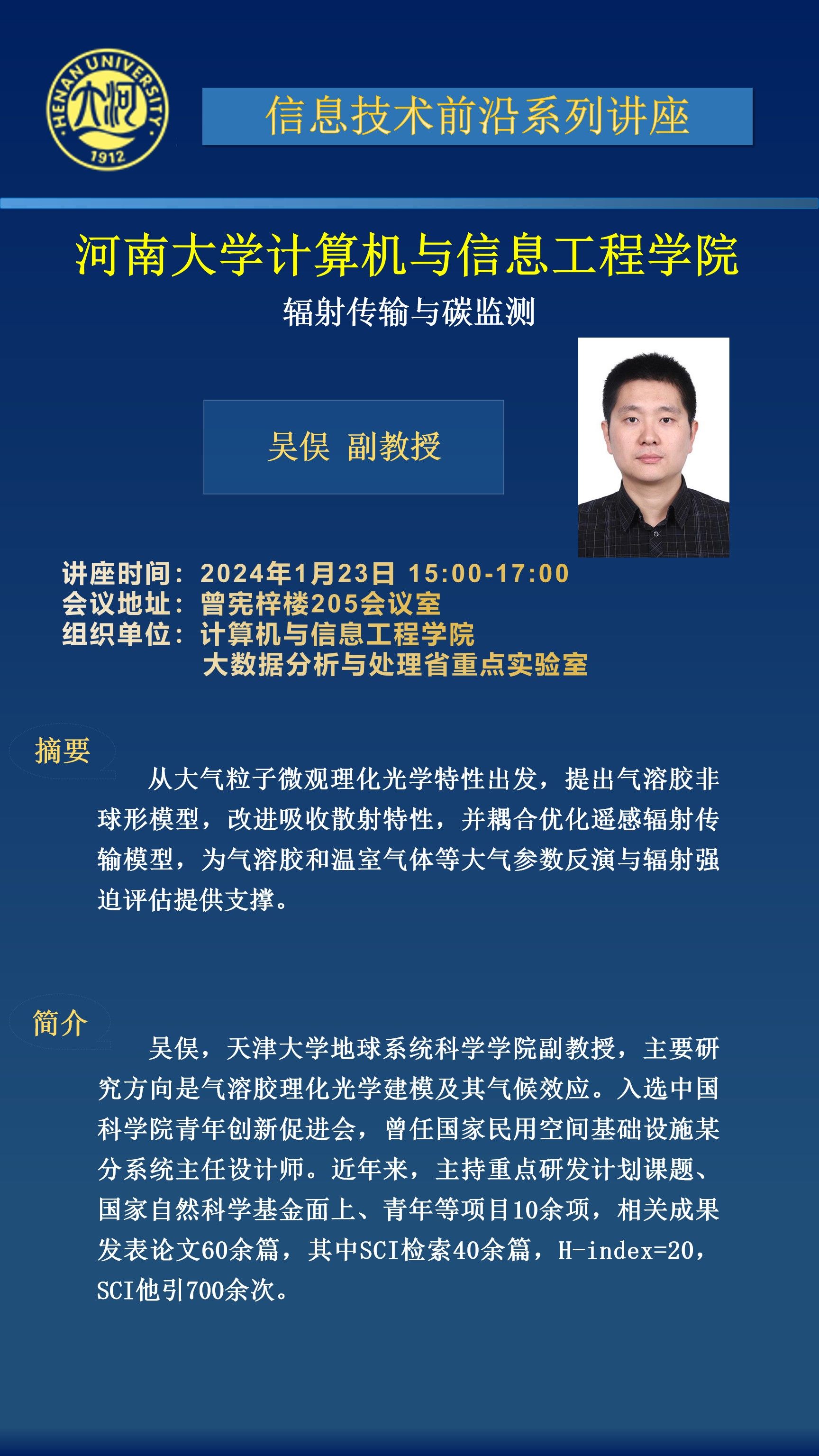 吴俣:辐射传输与碳监测(时间:1月23日)