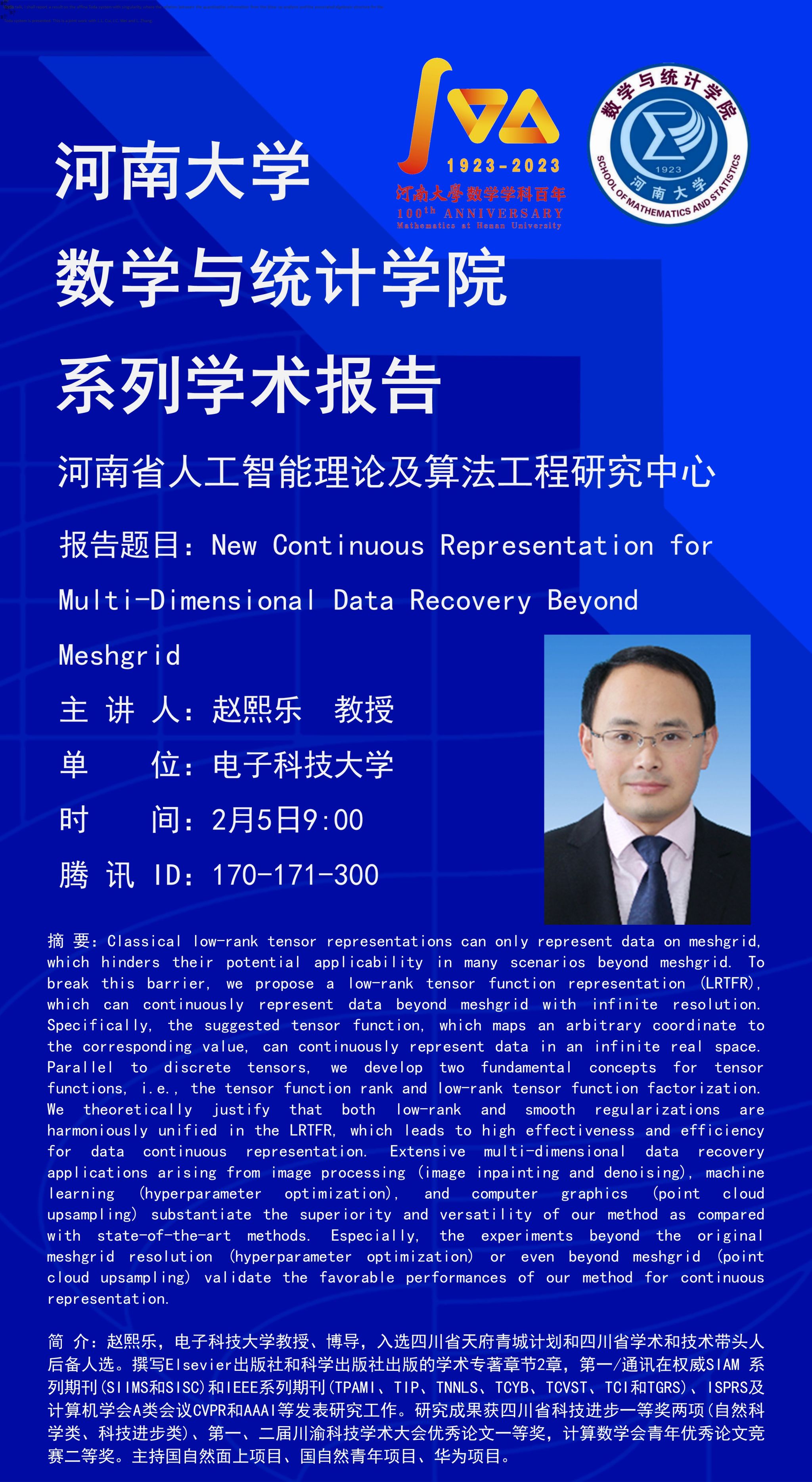 赵熙乐:New Continuous Representation for Multi-Dimensional Data Recovery Beyond Meshgrid(时间:2.5)
