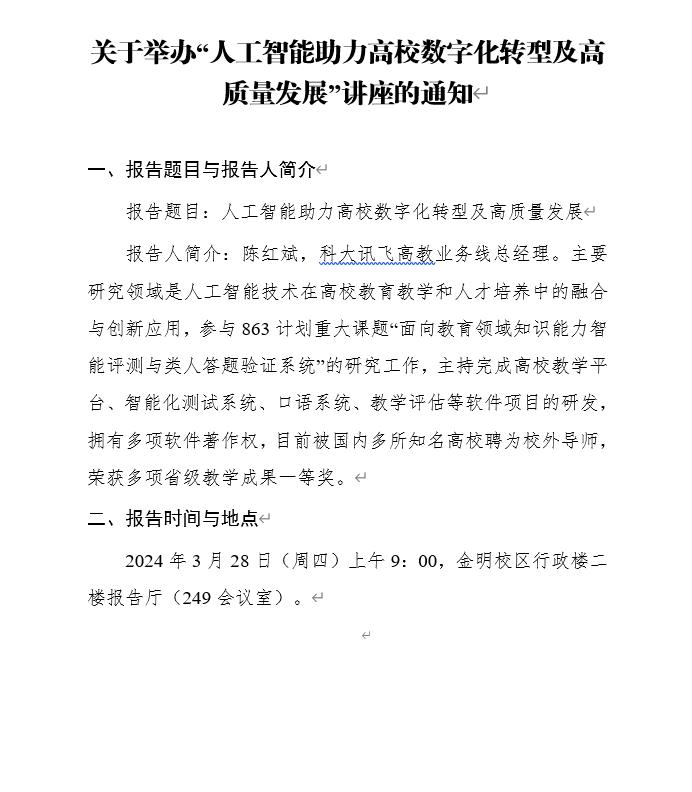 陈红斌:人工智能助力高校数字化转型及高质量发展(时间:3月28日)