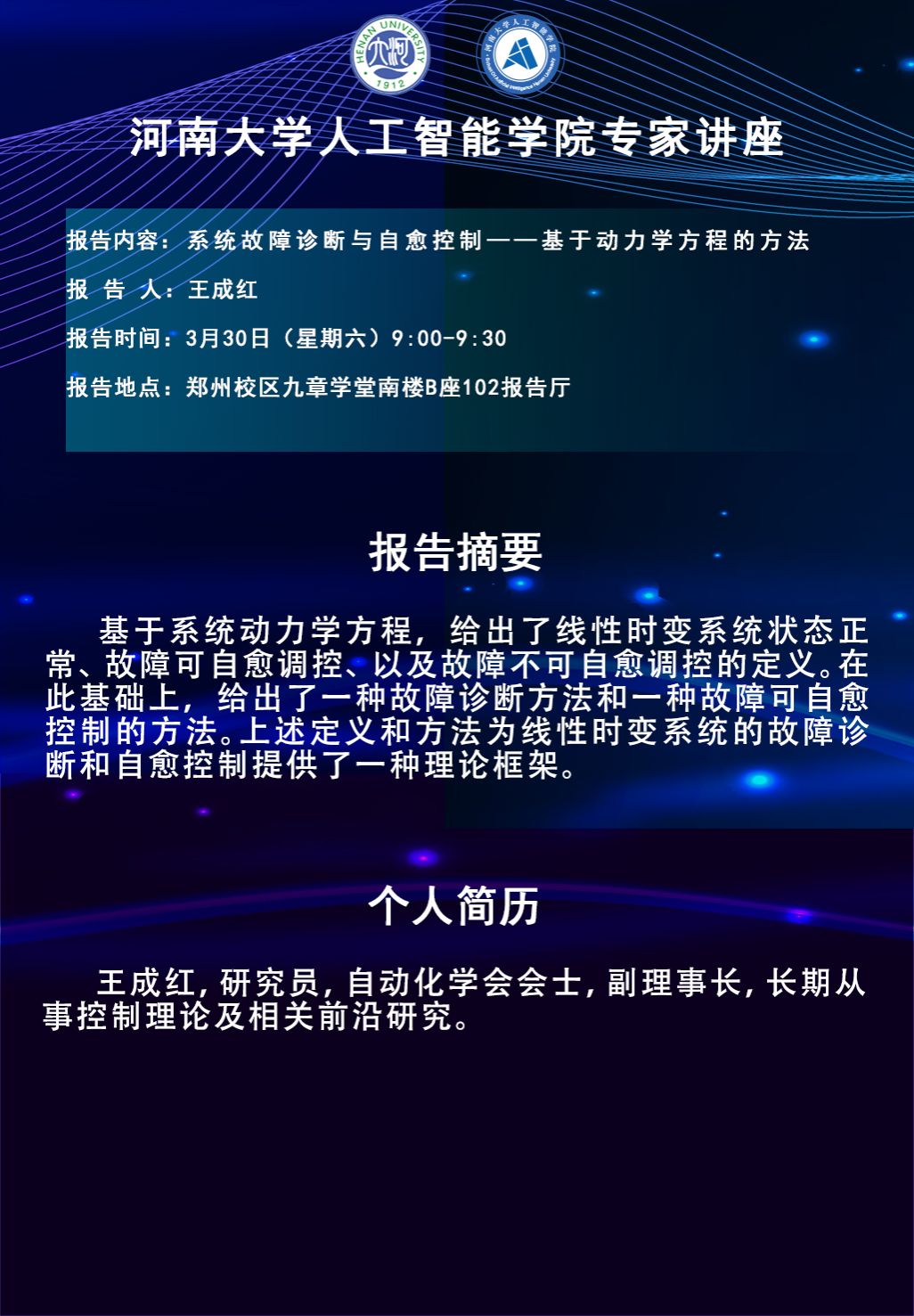 王成红:系统故障诊断与自愈控制一基于动力学方程的方法(时间:3月30日)