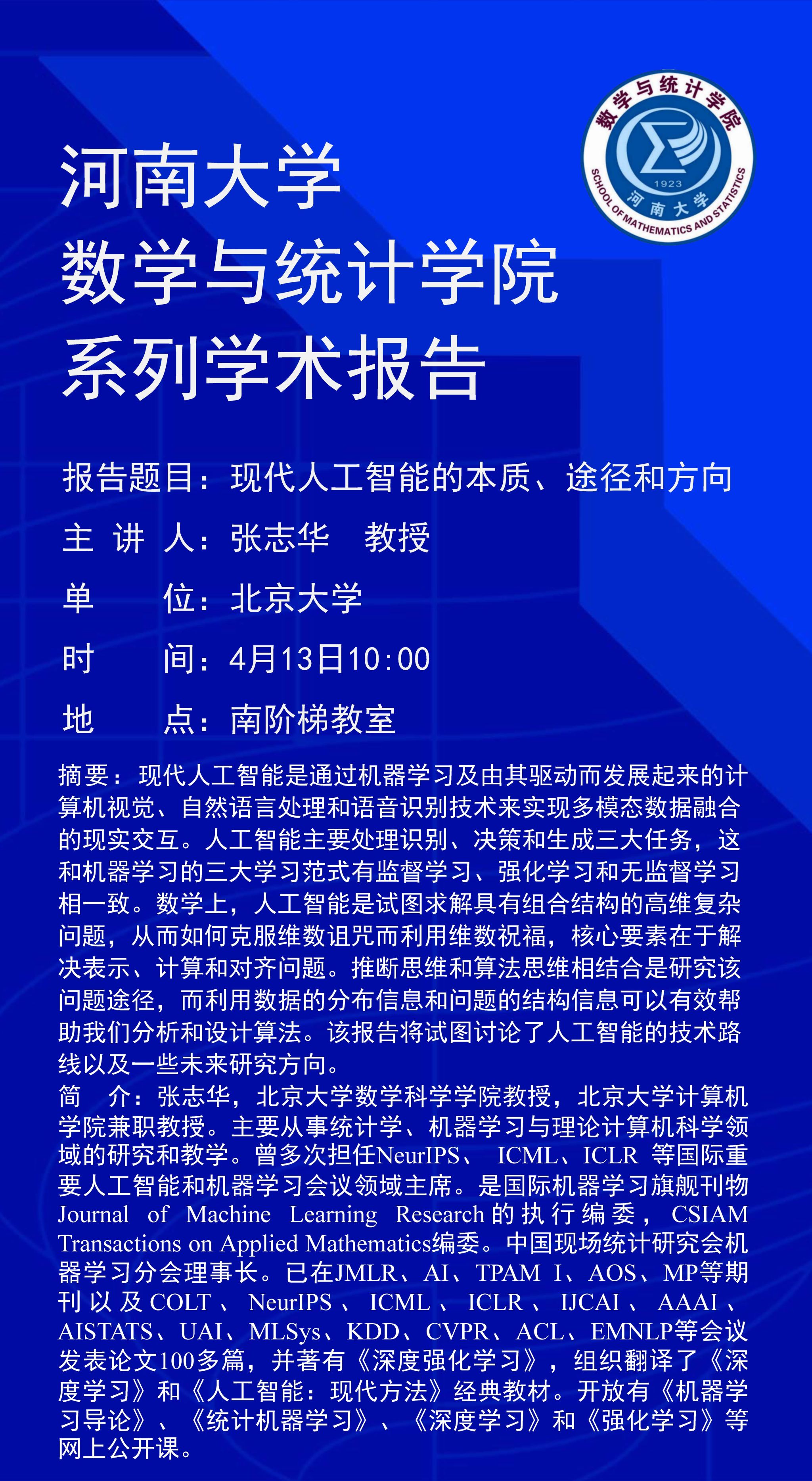 张志华:现代人工智能的本质、途径和方向(时间:4.13)