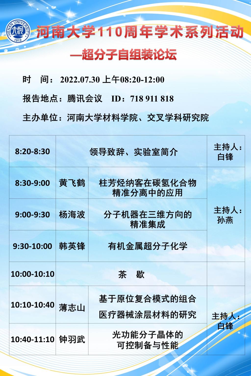yl7703永利官网110周年校庆学术活动:超分子自组装论坛(时间7.30)