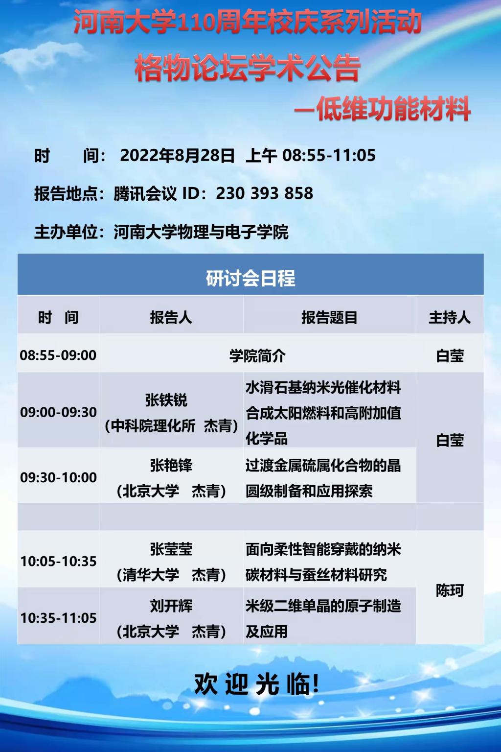 110周年校庆学术活动:格物论坛:低维功能材料研讨会(时间:8.28)