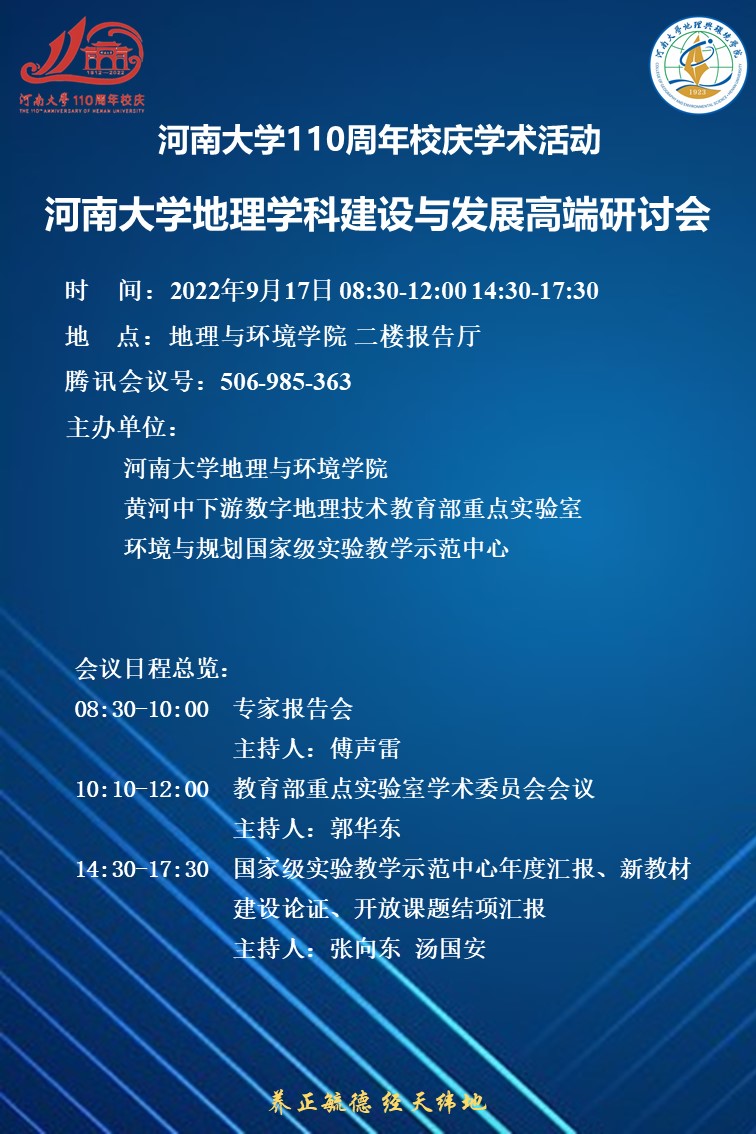 110周年校庆学术活动:yl7703永利官网地理学科建设与发展高端研讨会(时间9.17)