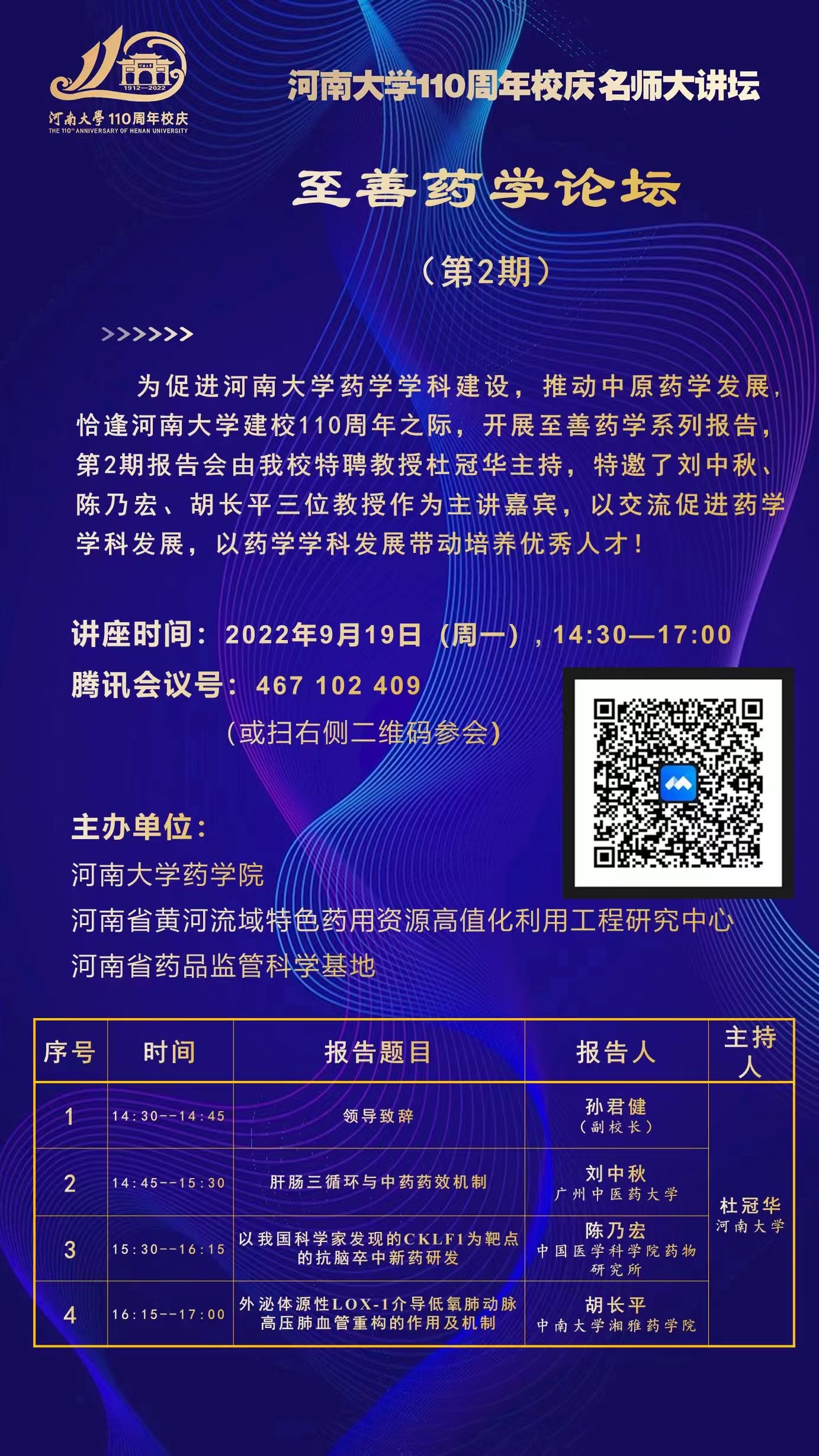 110周年校庆名师大讲坛:至善药学论坛(时间9.19)
