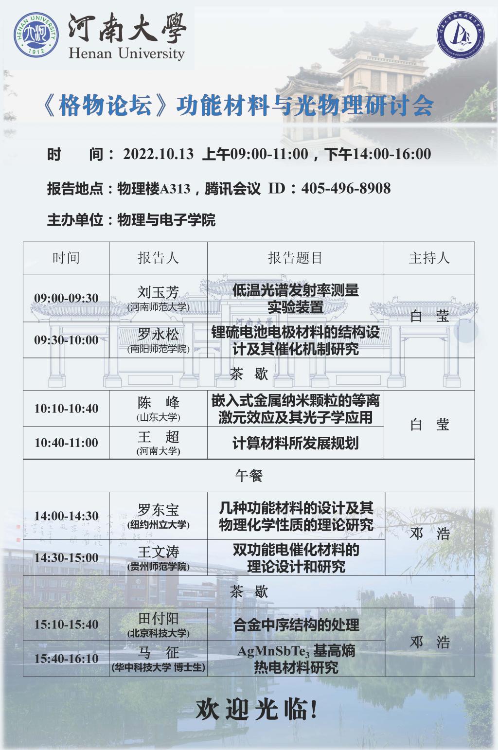 格物论坛:功能材料与光物理研讨会(时间10.13)