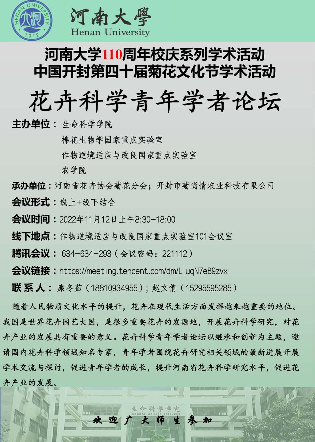 中国开封第四十届菊花文化节学术活动:花卉科学青年学者论坛(时间11.12)
