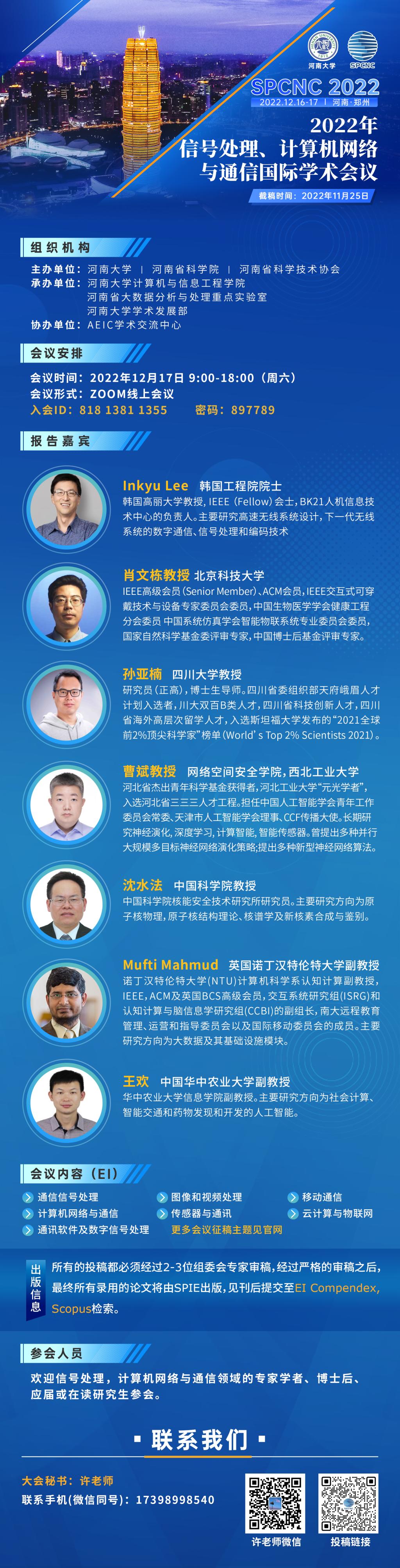 2022信号处理、计算机网络与通信国际学术会议(12.17)