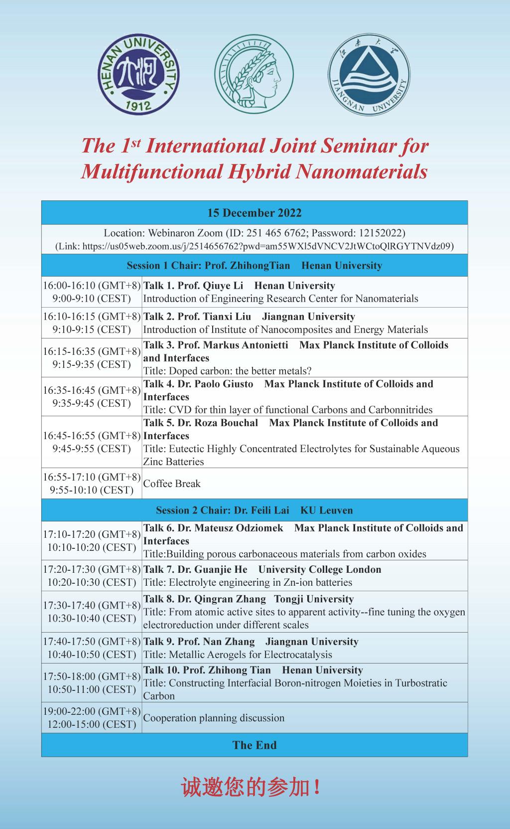 第一届多功能杂化纳米材料国际联合学术研讨会(时间12.15)