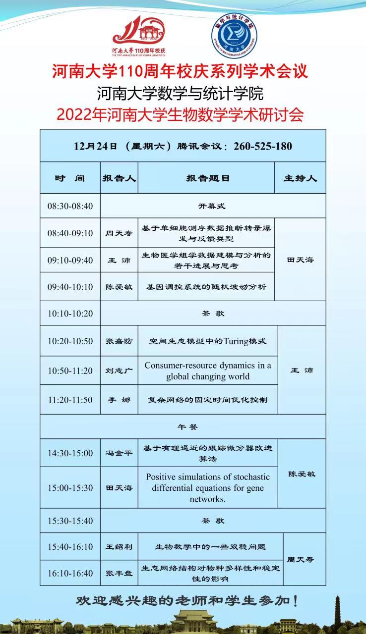 2022年yl7703永利官网生物数学学术研讨会(时间:12.24)
