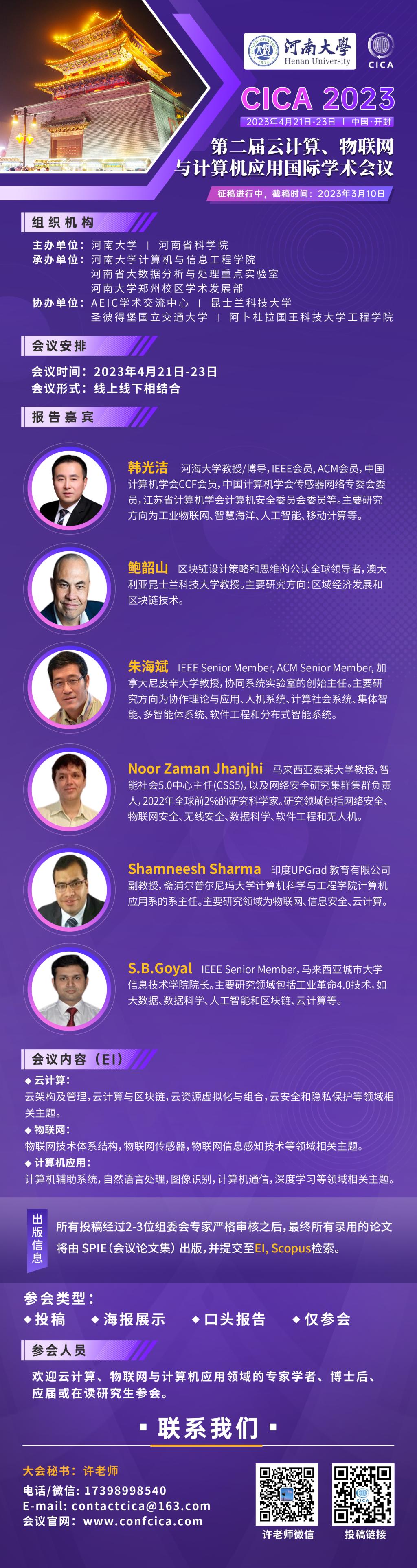 第二届云计算、物联网与计算机应用国际学术会议(时间4.21-23)