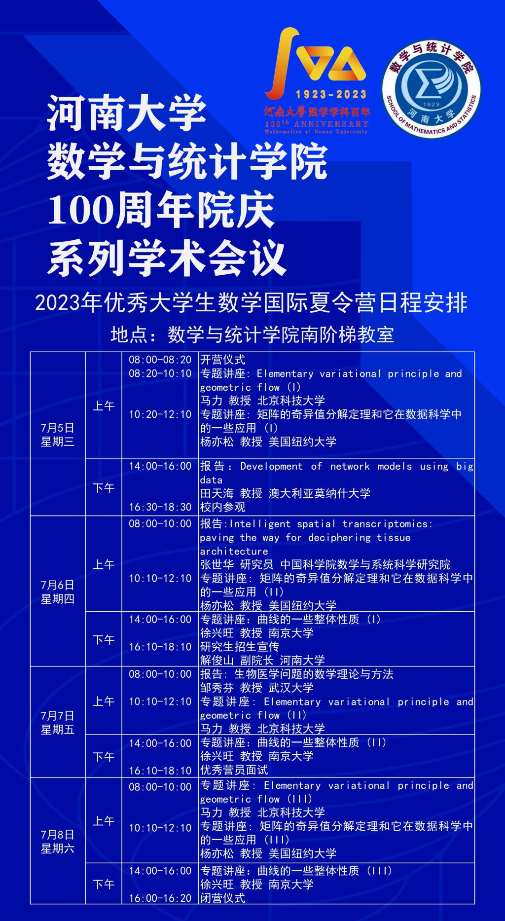 数学与统计学院2023年优秀大学生数学国际夏令营(时间:7.4-8)