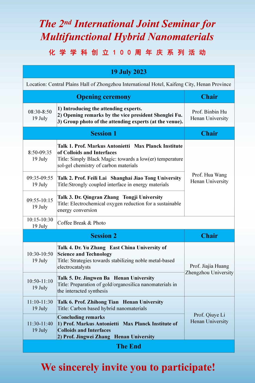 第二届多功能杂化纳米材料国际联合学术研讨会(时间7.18-20)