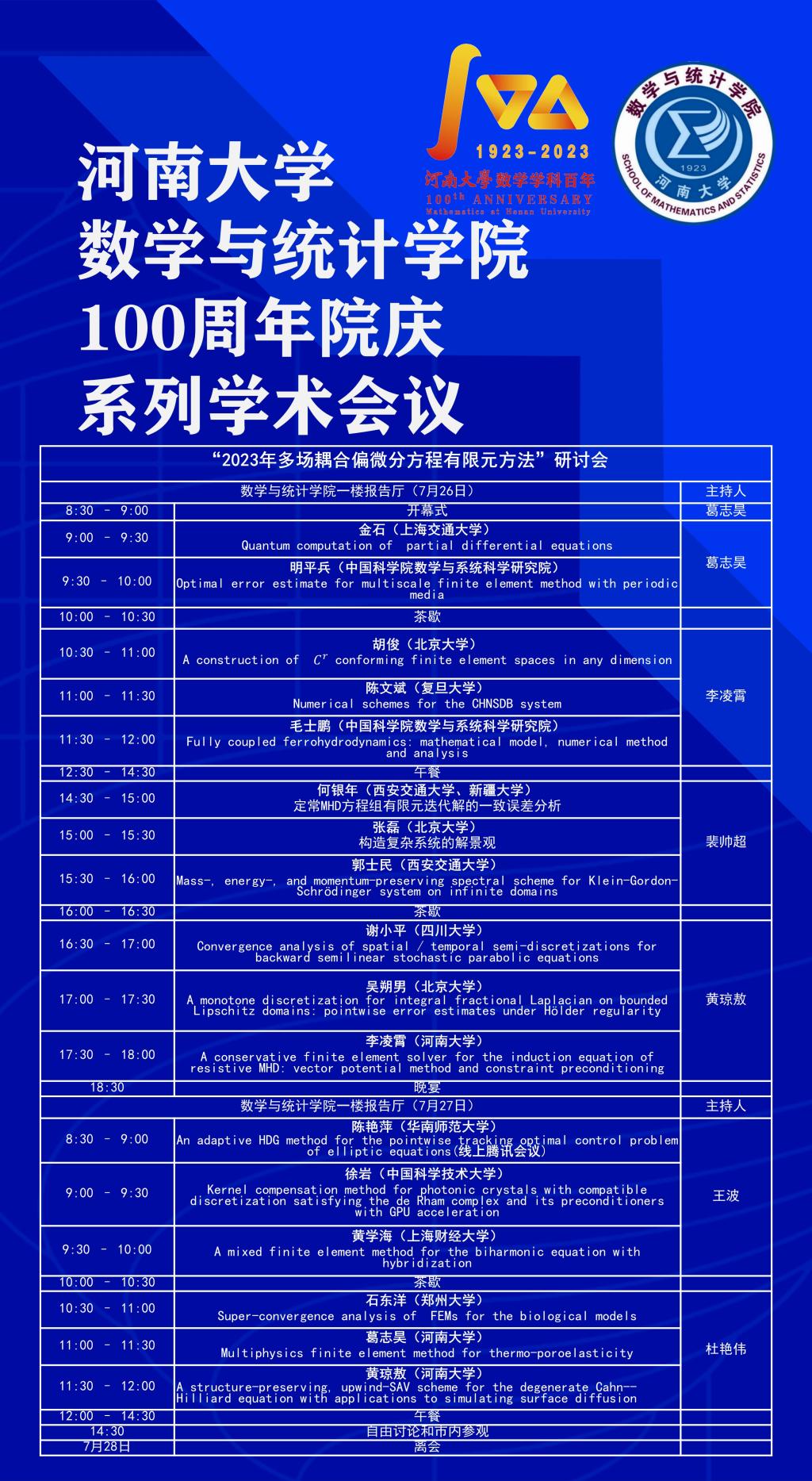 2023年多场耦合偏微分方程有限元方法研讨会(时间:7.26-27)